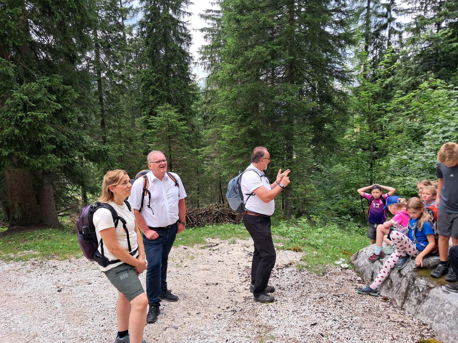 Schon seit Wochen geplant war dieser Kommunionausflug und wir alle freuten uns schon darauf. Aber fast wäre er wortwörtlich „ins Wasser gefallen“. Schlecht war die Wetterprognose für die ganze Woche gemeldet und man musste sich schon mit dem Gedanken für ein Alternativprogramm auseinandersetzen. Doch das Wetter meinte es am Tag des Ausflugs gut und man traf sich gegen 14 Uhr am Parkplatz Hinterbrand. Gemeinsam mit Pfarrer Dr. Thomas Frauenlob, Diakon Michael König, den Kommunionkindern begleitet von zahlreichen Eltern und ihrer Religionslehrerin Kathi Stangassinger machten sich alle, nach einem kurzen Gebet, auf den Weg zur Königsbachalm. Auf dem Weg dorthin machte man immer wieder kleine Stationen, bei denen die Kinder sich mit den Inhalten des Sonnengesanges, des heiligen Franziskus von Assisi, auseinandersetzten und über deren Bedeutung nachdachten und sich dazu äußerten. Was den Kindern, in der schönen Natur die sie umgab, sehr leicht fiel.