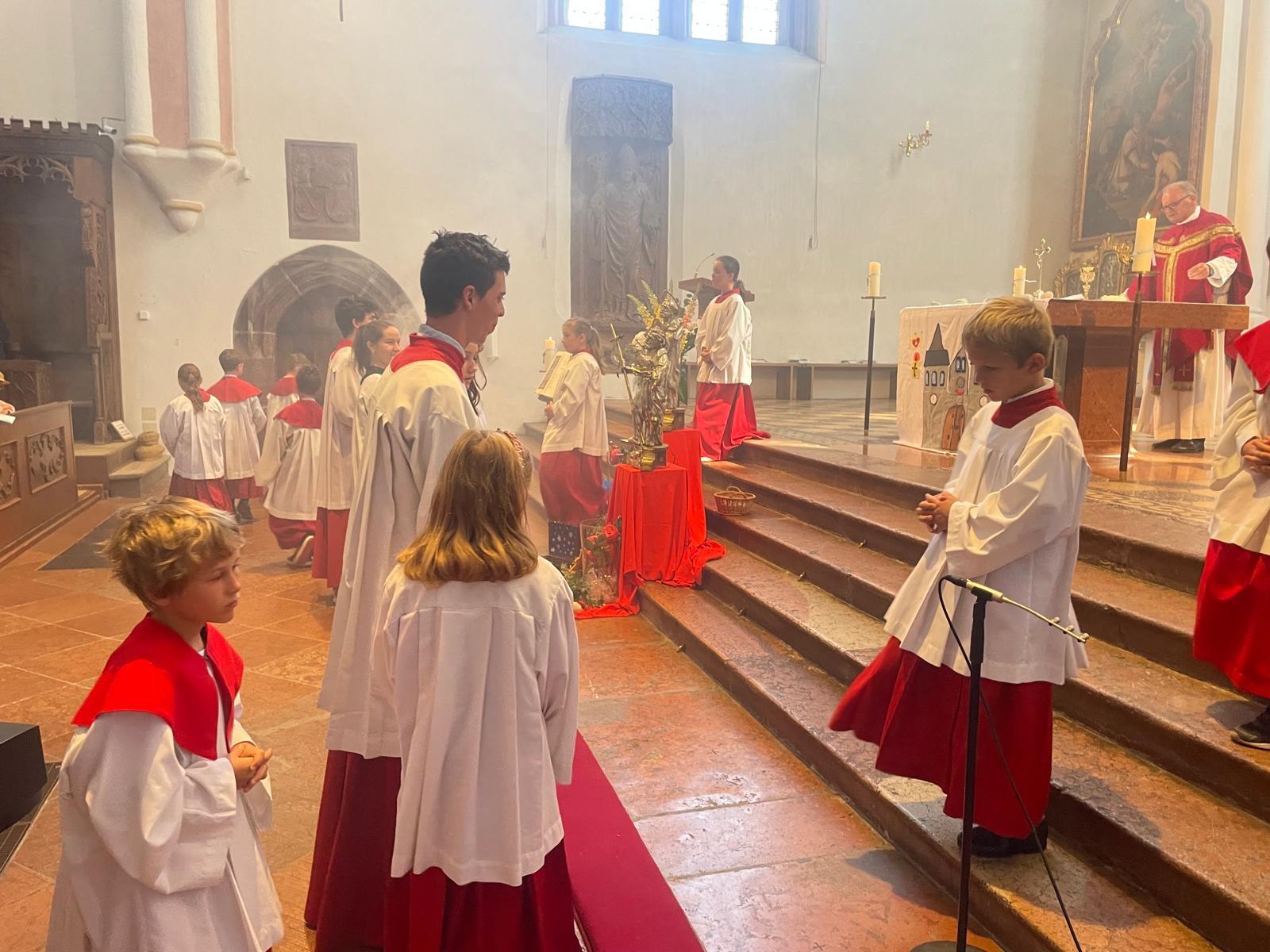 Vorstellung der neuen Ministrantinnen und Ministranten im Familiengottesdienst zum Patrozinium in der Stiftskirche.