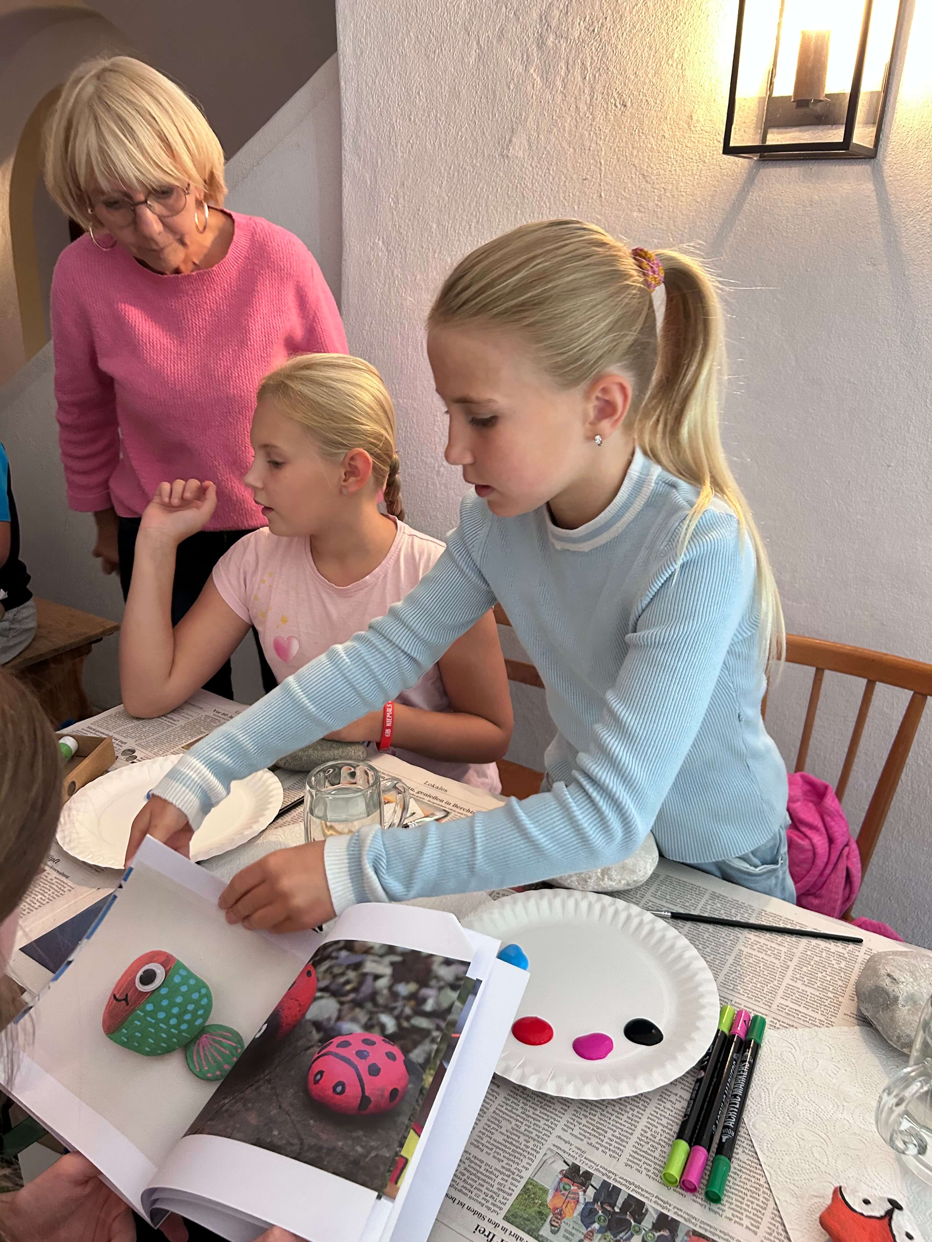 Ein große Schar Kinder folgte der Einladung des Pfarrgemeinderats zum diesjährigen Kinderferienprogramm. „Bastelaktion mit anschließender kulinarischer Verkostung“ hatte sich in den letzten Jahren bewährt. So entschloss man sich heuer Steine bunt anzumalen um im Anschluss leckere Burger genießen zu können.