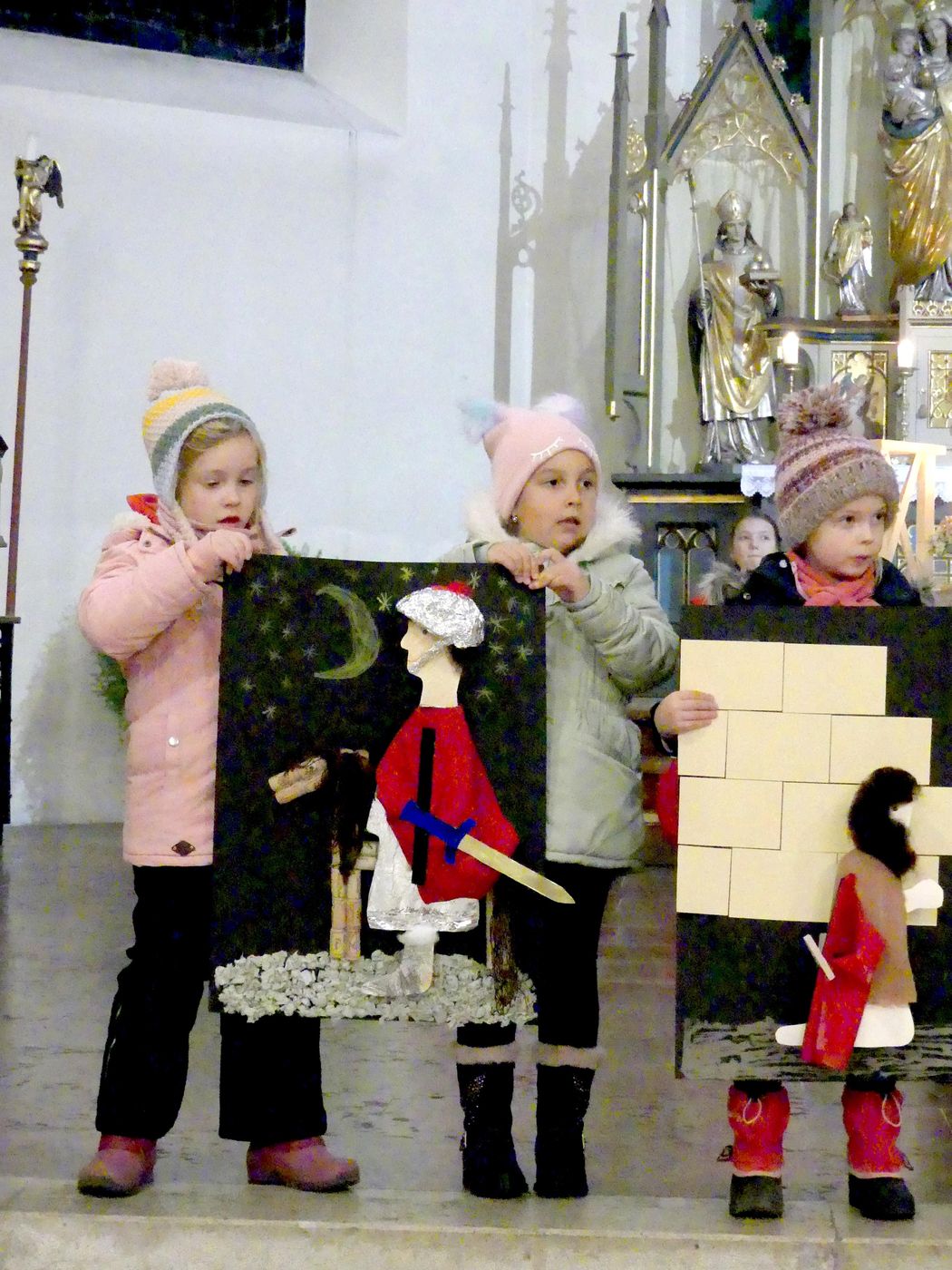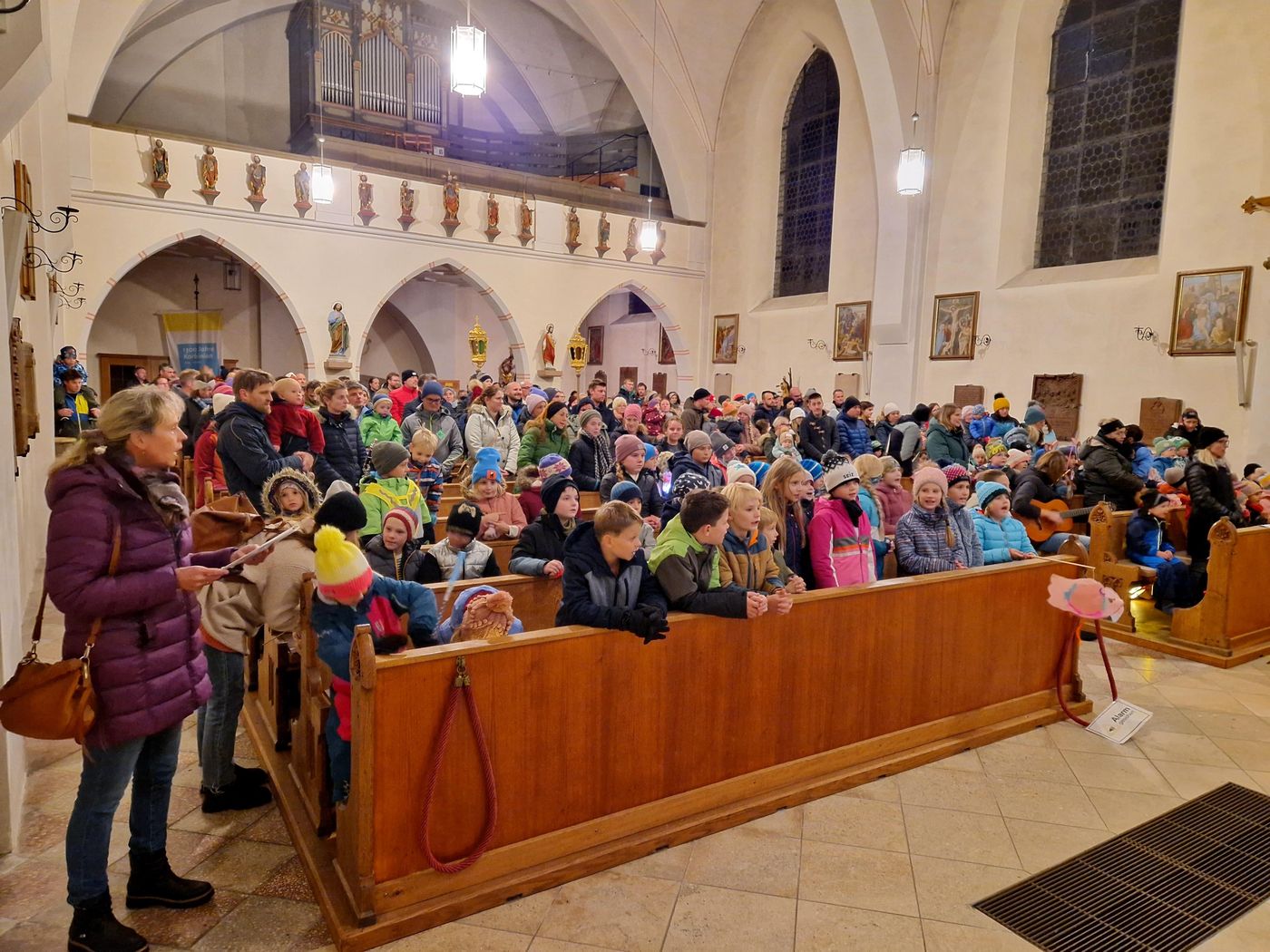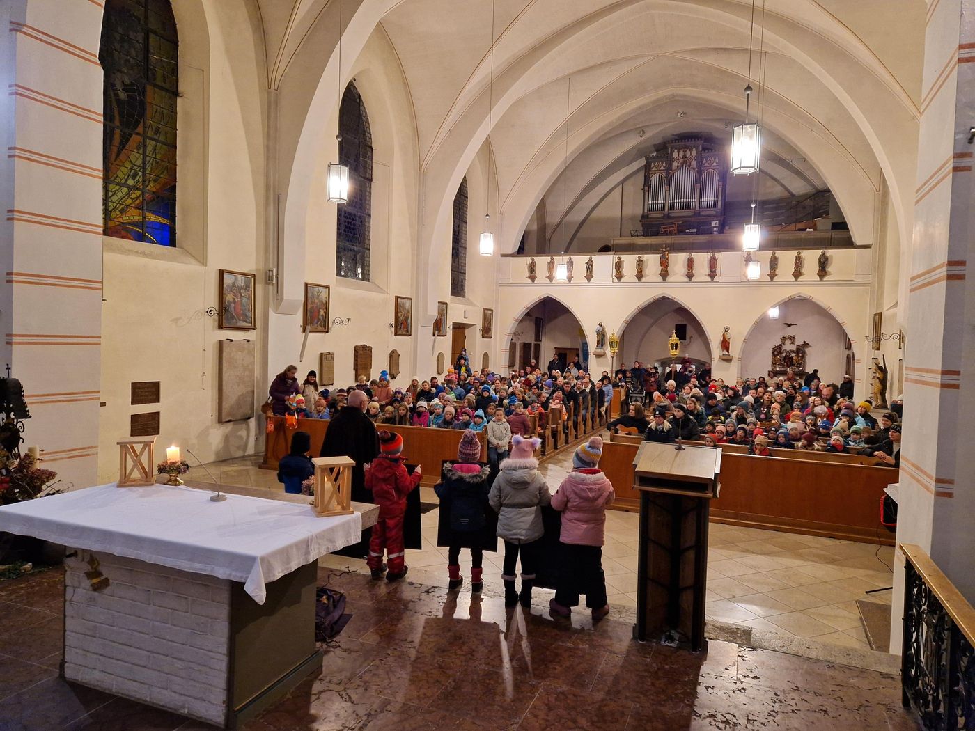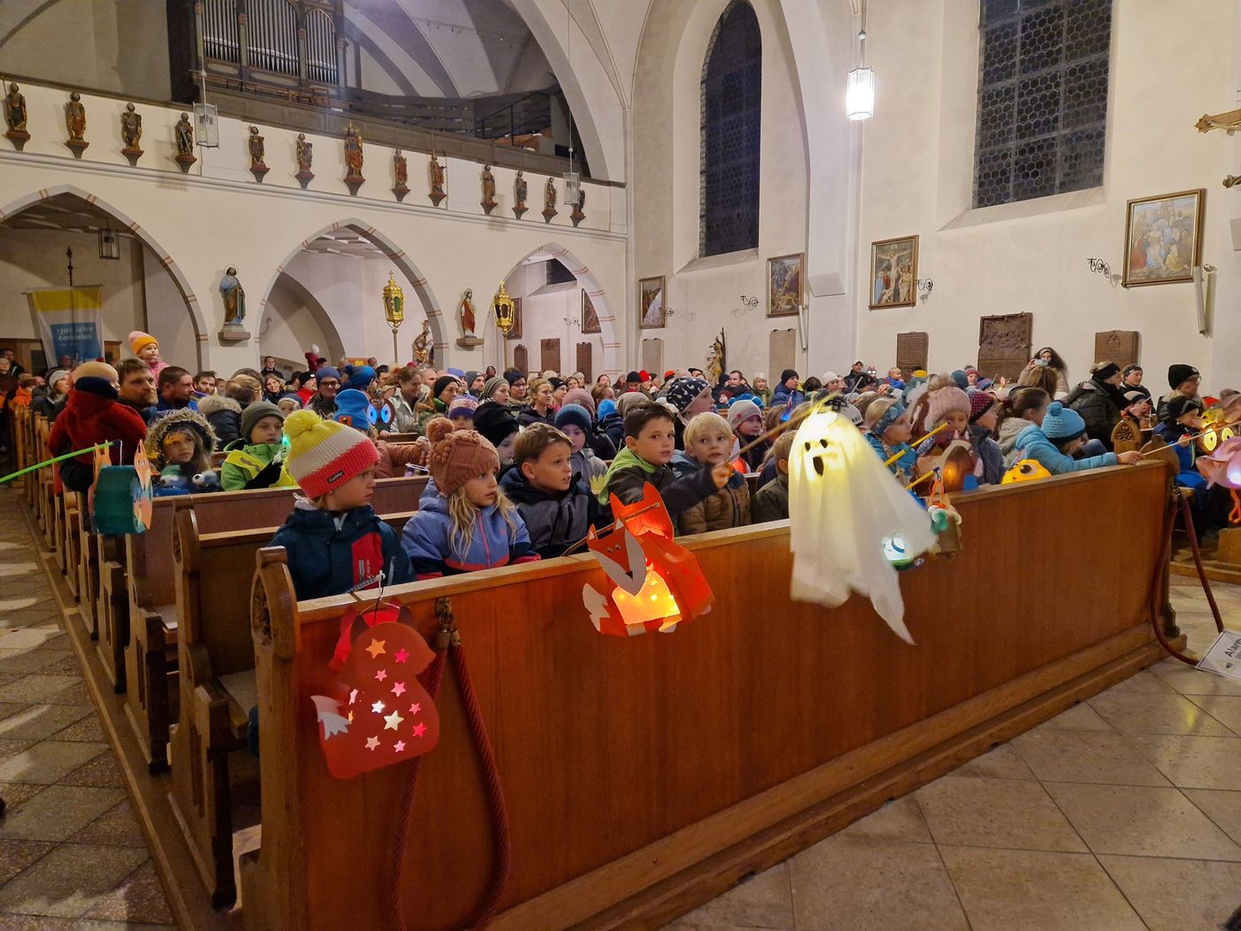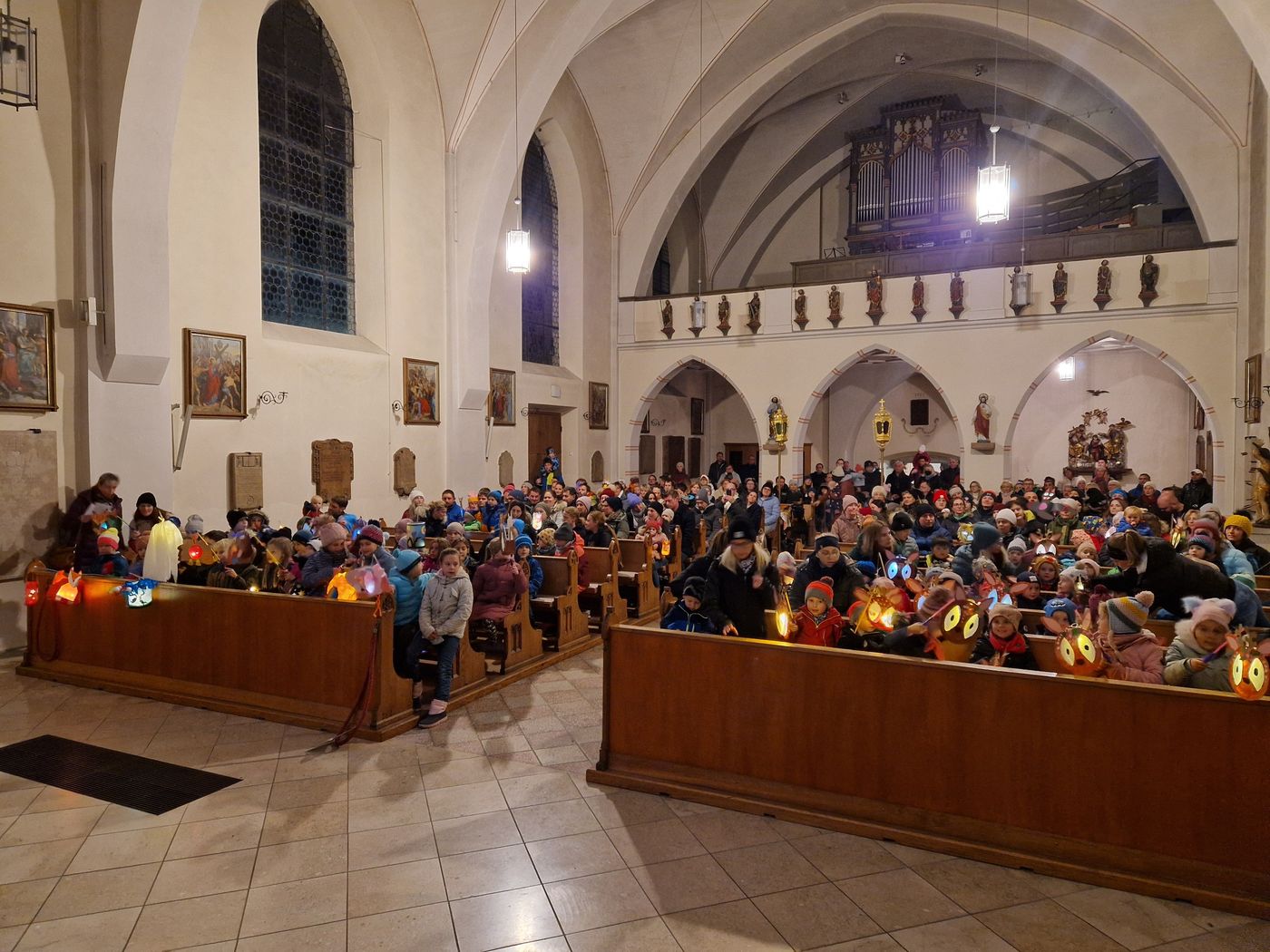 Die Pfarrkirche St. Nikolaus in Marktschellenberg hatte zur traditionellen „St. Martins-Andacht“ Mühe, das Aufgebot an Kindern aufzunehmen, um den Darstellungen des Franziskanerpaters Manfred Gruber lauschen zu können. Er rief vor den Kindergarten- und Schulkindern und den restlichen Besuchern die Geschichte um St. Martin und die lange zurückliegenden Ereignisse in Erinnerung. Um die Vorstellung der Geschehnisse zu unterstützen, hatten die Kinder 4 Bilder gefertigt, die von den Kindern am Altar gehalten wurden. Der Pater wies er auf das selbstlose Handeln des Hl. Martin hin, der uns Vorbild sein soll, um den in Not geratenen Menschen zu helfen.