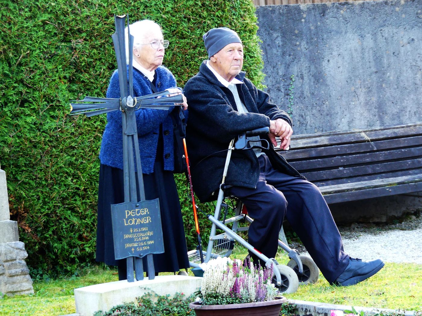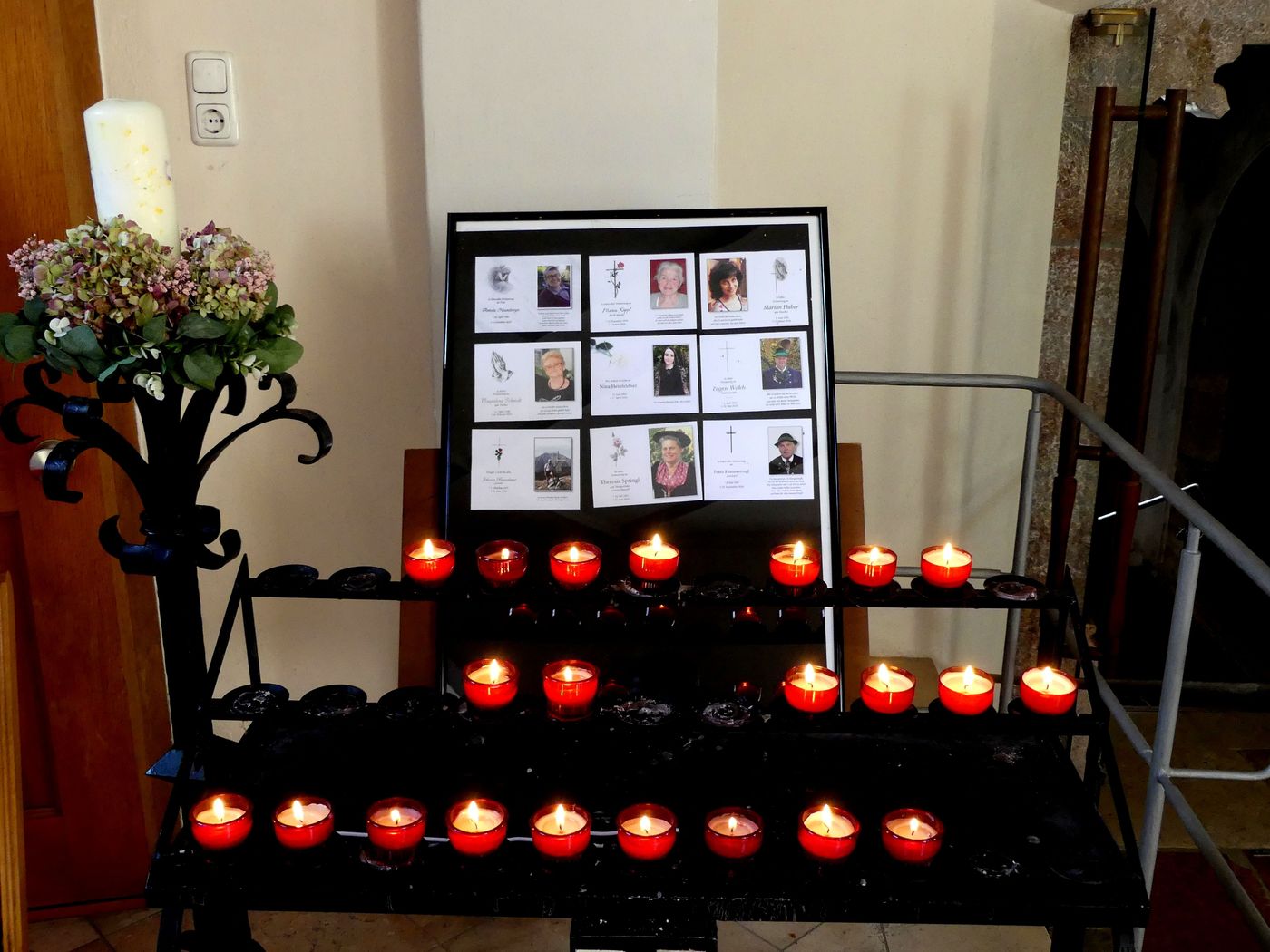 Viele Gläubige der Gemeinde fanden sich daher zunächst in der Pfarrkirche ein, um dabei der in diesem Jahr in der Pfarrgemeinde verstorbenen Personen zu gedenken. Pater Manfred Gruber rief die Namen der 10 heuer Verstorbenen nochmals in Erinnerung und für jeden wurde am Altar eine Kerze angezündet. Danach ging es in einem gemeinsamen Kirchenzug, der von den Ministrantinnen angeführt wurde, zum Friedhof.