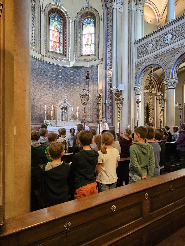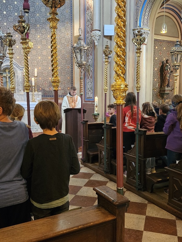 Die Gruppe aus Bischofswiesen machte sich zunächst auf den Weg zum Bahnhof und kam nach kurzweiliger Fahrt in Bad Reichenhall an, wo sie am Bahnhof auf Pater Fidelis traf. Nach einem kurzen Fußmarsch gelangten alle zur Alten Saline, wo in der Brunnhauskapelle gemeinsam eine Heilige Messe gefeiert wurde. Nach einer kurzen Brotzeitpause ging es im gleichen Gebäude in die Tiefe. Im sogenannten Quellenbau brachte eine Führerin den Kindern die Faszination von Technik und Geschichte näher. Der Rückweg zum Bahnhof wurde mit einem Eis und einem Spielplatzbesuch noch ein wenig versüßt.
