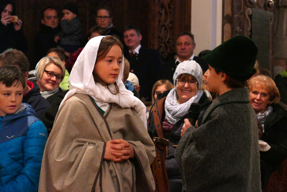 Im Rahmen der sehr gut besuchten Kindermette am Nachmittag des Heiligen Abends zeigten einige Kinder ein von Kathi Stangassinger einstudiertes Krippenspiel. Der Kinderchor der Stiftsmusik unter Leitung von Stiftskapellmeister Stefan Mohr trug zur musikalischen Umrahmung der Wort-Gottes-Feier bei.