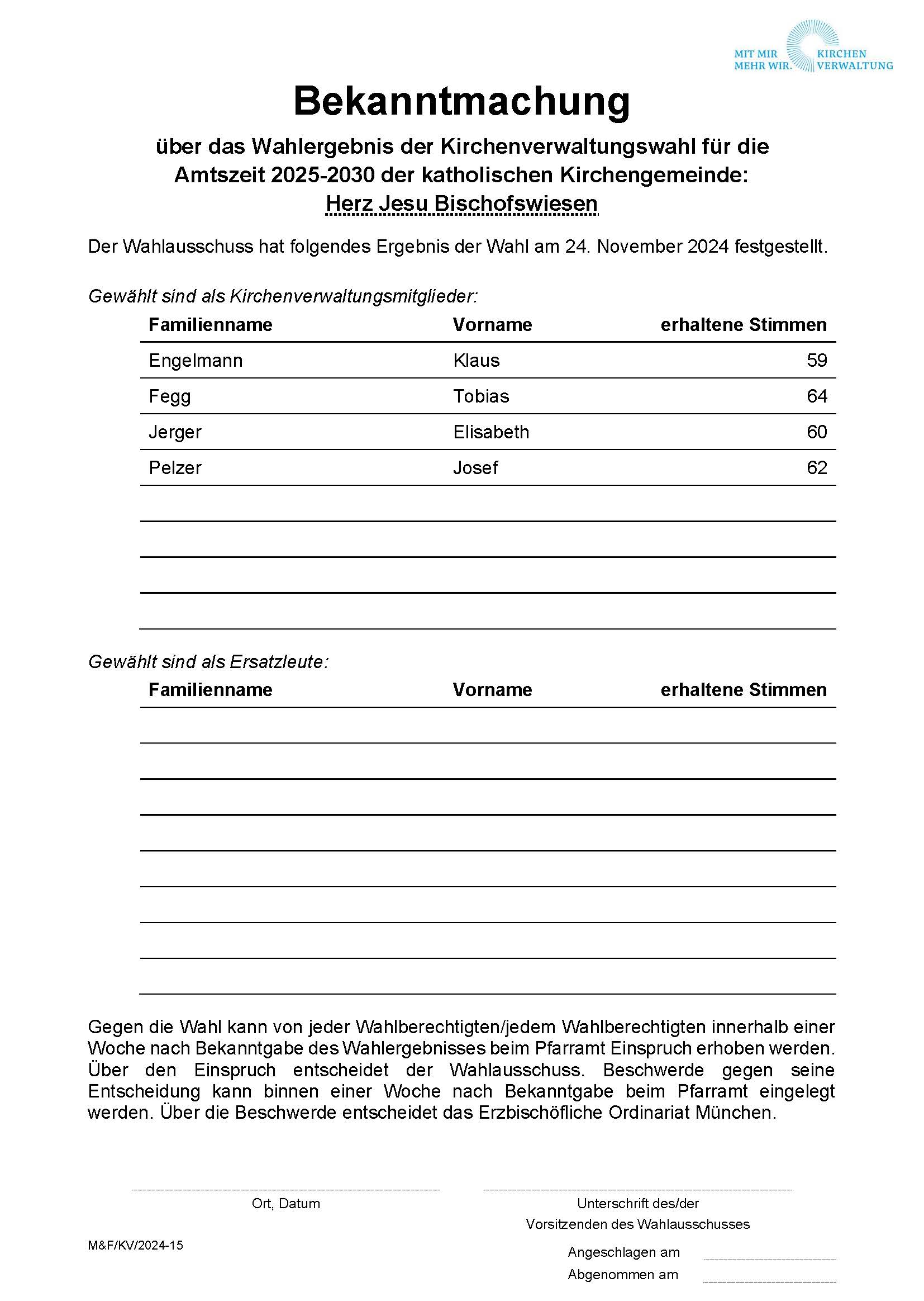Kandidatenliste Pfarrei Herz Jesu Bischofswiesen |
