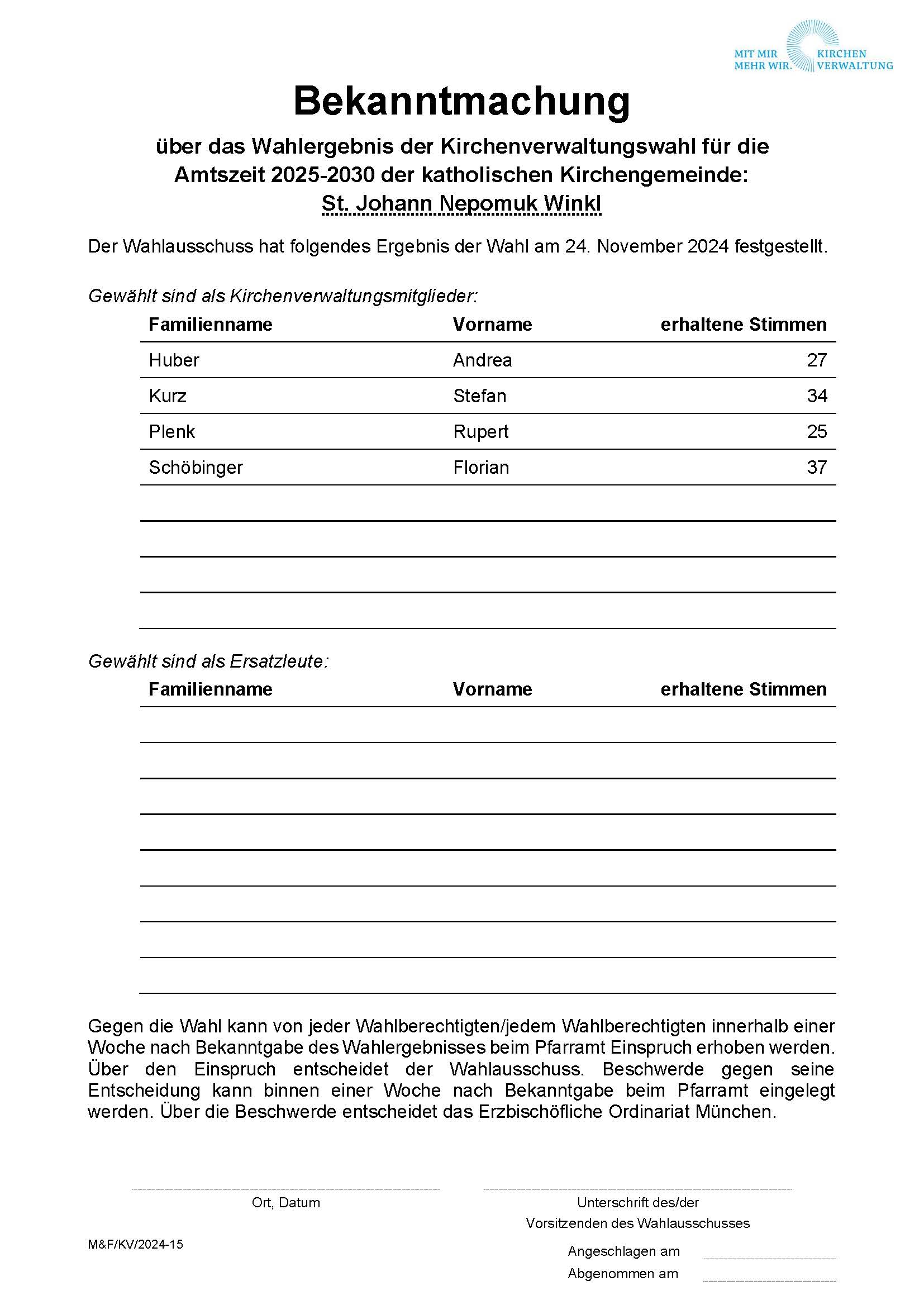 Kandidatenliste Pfarrei St. Johann Nepomuk Winkl |