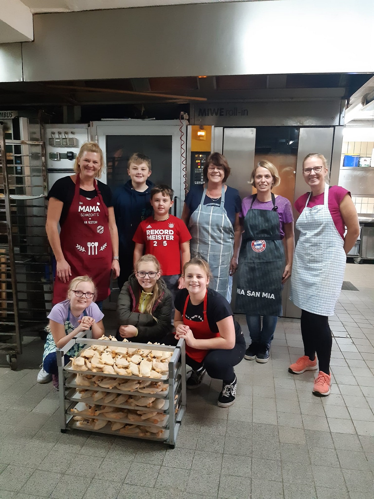 Nach der Rückkehr durften sich die Kinder zunächst eine vom Vorbereitungsteam in einer örtlichen Backstube gebackene Martinsgans abholen und eine Tafel Schokolade oder eine Tüte Gummibärli für die Tafel spenden. Am Kirchplatz bewirteten Pfarrgemeinderat und der Elternbeirat vom Kindergarten und ermöglichten so einen geselligen Ausklang.