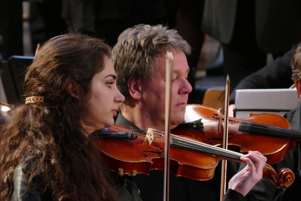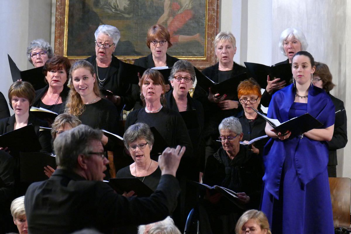 Den Auftakt des Chorkonzertes bildete nach der Begrüßung allerdings ein zeitgenössisches Werk: „Triptych“, ein dreisätziges Stück des britischen Komponisten Tarik O’Regan (geboren 1978), sorgte für ein ungewohntes Hörerlebnis. Reine Instrumentalmusik wechselte sich mit Chor-Passagen ab und vor teils flirrenden Streicherklängen entfaltete sich der warme Sopran von Elise van Es. Der Komponist, der das Werk für eine Reihe von Konzerten in Jerusalem und im Westjordanland geschrieben hat, nimmt darin auch Anleihen an nordafrikanischer und Jazzmusik.