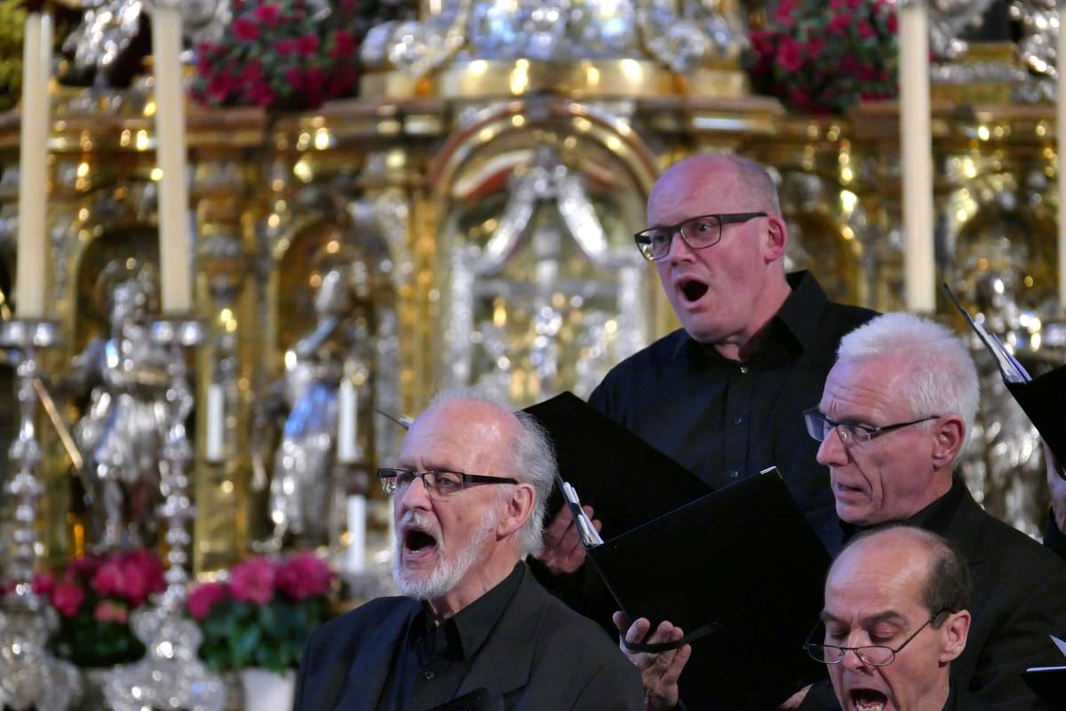 Das dritte dargebotene Werk, das dem Konzertabend seinen Namen gegeben hatte, war „Lux Aurumque“, eine A-cappella-Komposition von Eric Whitacre (geboren 1970 in Nevada). Er vertont darin ein englisches Gedicht, das er zu diesem Zweck ins Lateinische übersetzen ließ: „Licht, warm und schwer wie reines Gold, und die Engel singen sanft für das neugeborne Kind.“ Whitacre entwirft dabei mystische und geradezu sphärische Klangbilder und setzt mit feinen Dissonanzen die unterschiedlichen Farben und Spiegelungen des Lichts in Töne um. „Weltbekannt“ wurde das Stück, weil der Komponist es in der nicht unumstrittenen Aktion „Virtual Choir“ von 185 Sängern aus zwölf Ländern singen ließ, die Videos zusammenfügte und bei Youtube einstellte. So interessant das Ergebnis sein mag, das mittlerweile mehr als 5 Millionen Mal angeklickt wurde, mit Sängern aus Fleisch und Blut in einem so passenden Rahmen wie der Stiftskirche mit dem angestrahlten Auferstandenen über dem glitzernden und funkelnden Silberaltar entfaltet das nur fünf Minuten dauernde Werk eine ungleich beeindruckendere Wirkung.
