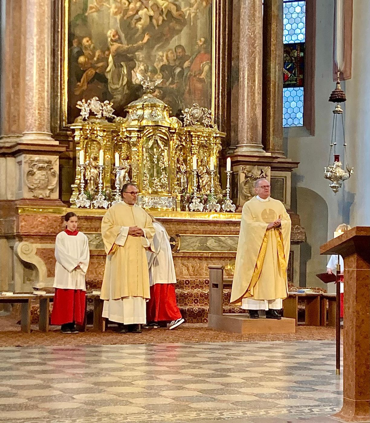 Die Plakate sind gut sichtbar in der Stiftskirche und in der Pfarrkirche Hl. Familie Au und können dort angesehen werden. Wir wünschen unseren Kommunionkindern viel Freude beim Mitgestalten und Mitfeiern bei den Familiengottesdiensten, dass sie eine schöne Gemeinschaft erleben können und ganz viel Neugierde beim Entdecken des Geheimnisses unseres Glaubens haben werden.