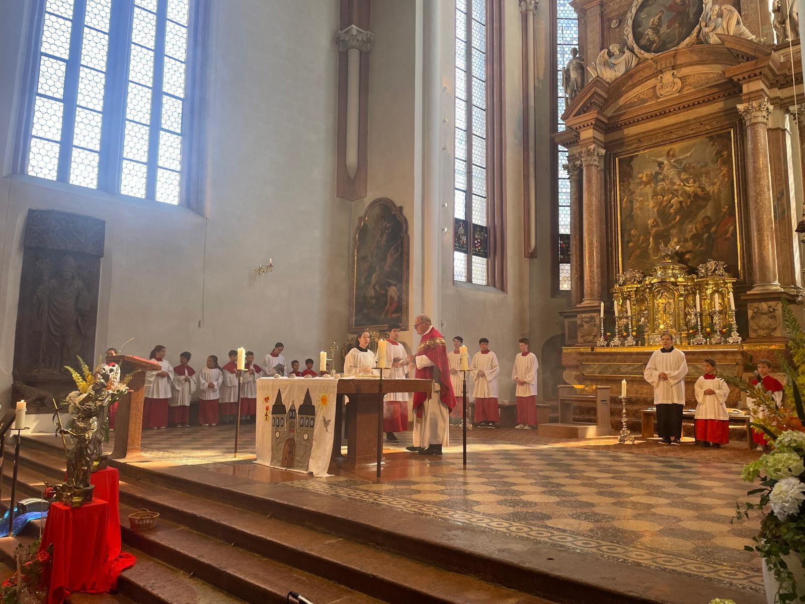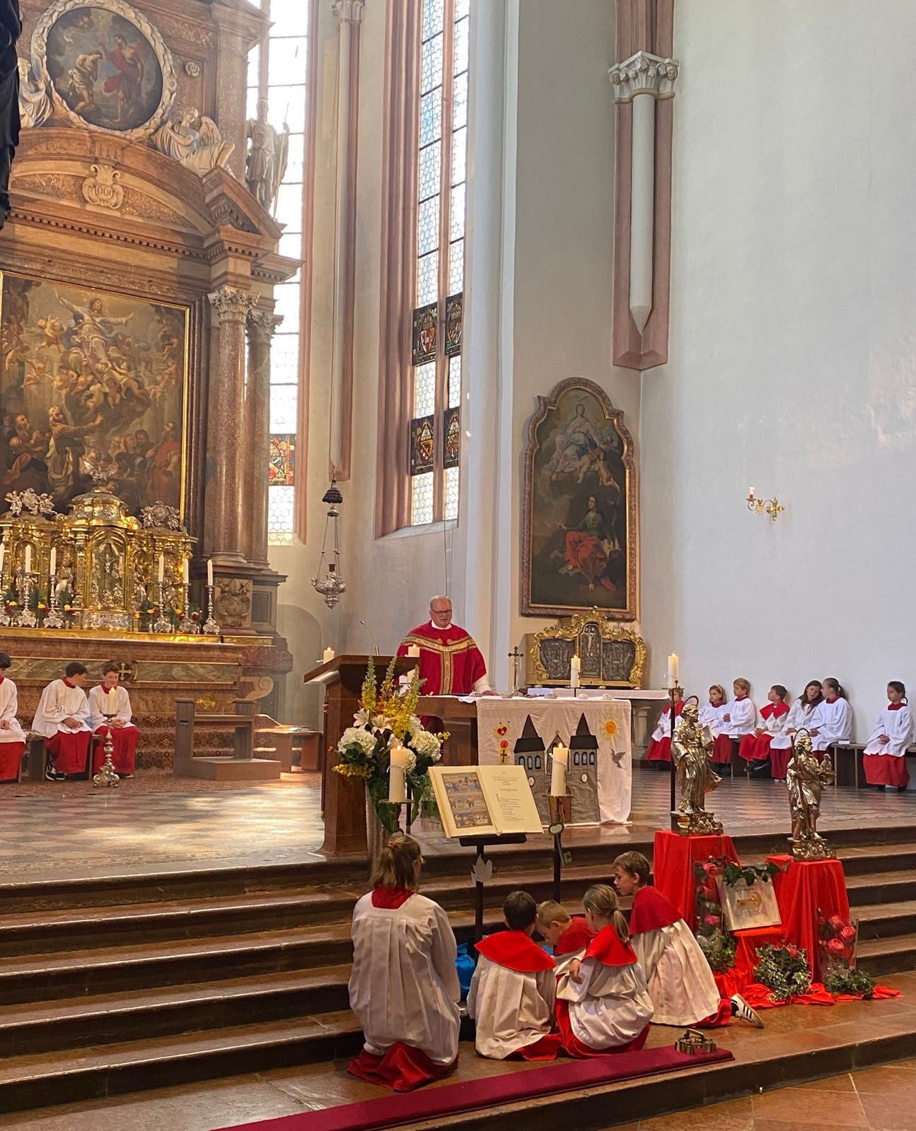 Vorstellung der neuen Ministrantinnen und Ministranten im Familiengottesdienst zum Patrozinium in der Stiftskirche.