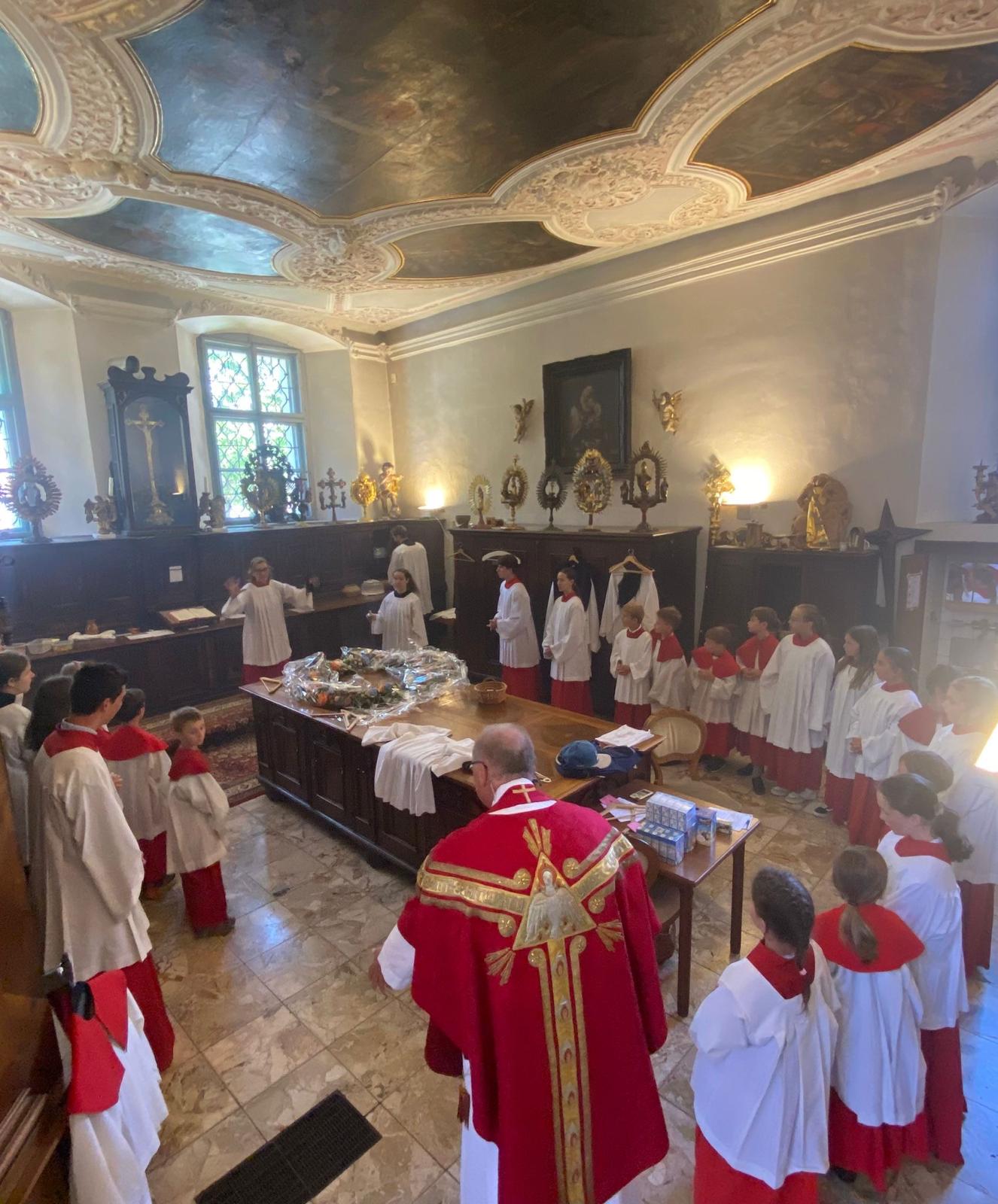 Ministranten vor Anprobe der Gewänder und in der Obersakristei.