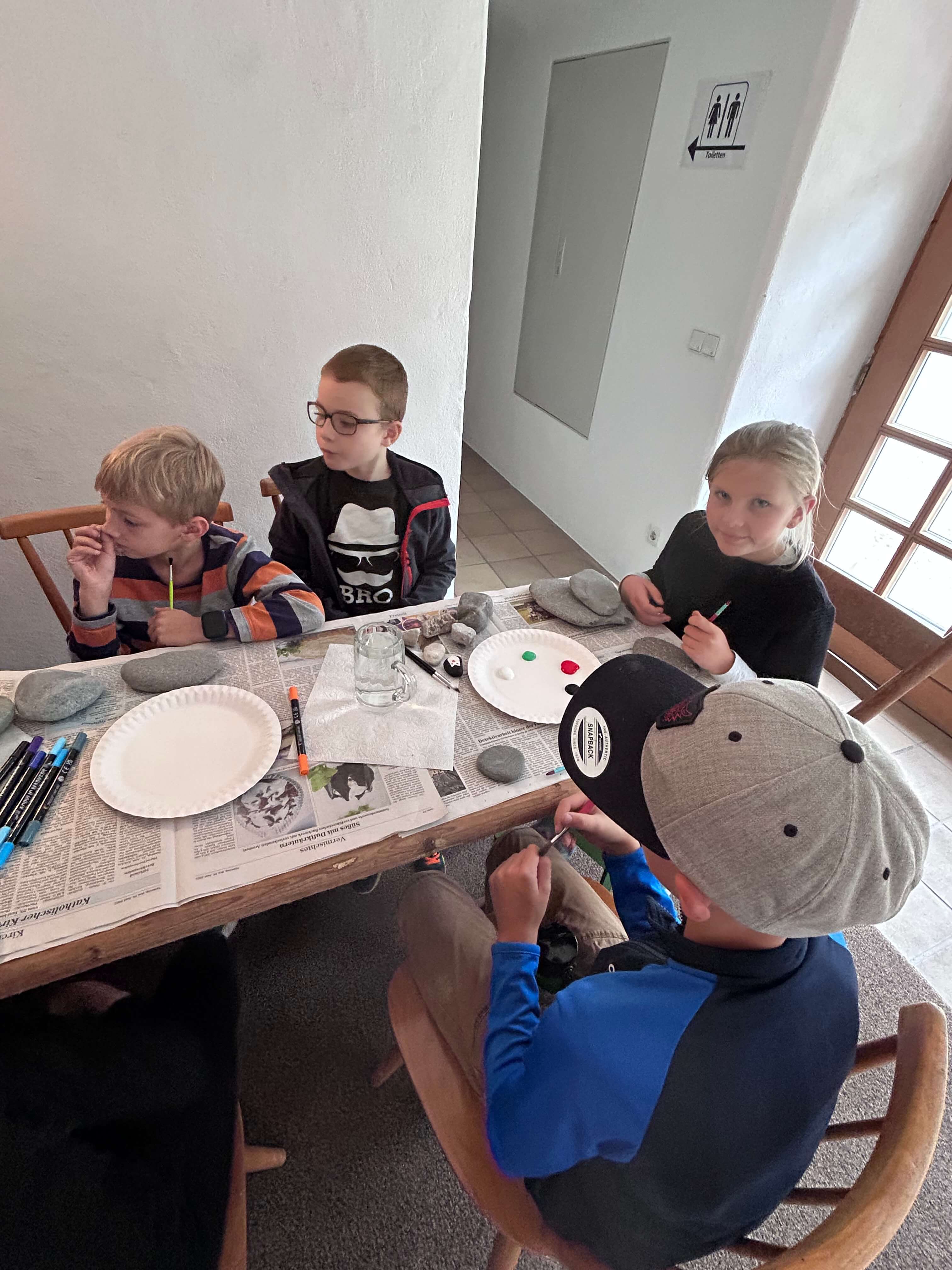 Ein große Schar Kinder folgte der Einladung des Pfarrgemeinderats zum diesjährigen Kinderferienprogramm. „Bastelaktion mit anschließender kulinarischer Verkostung“ hatte sich in den letzten Jahren bewährt. So entschloss man sich heuer Steine bunt anzumalen um im Anschluss leckere Burger genießen zu können.