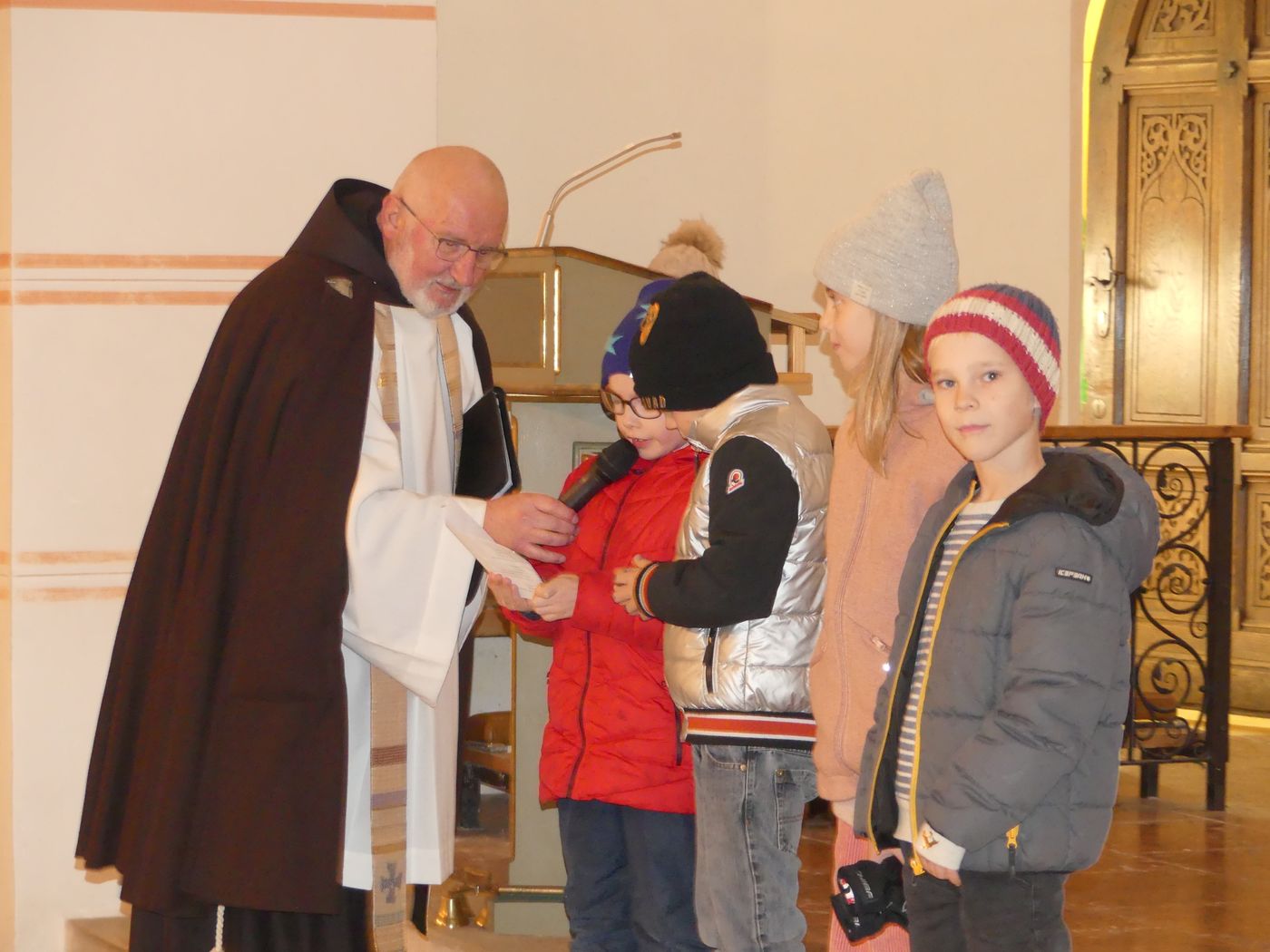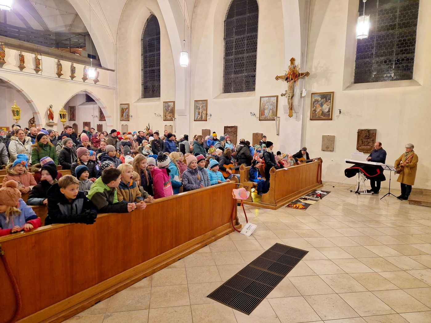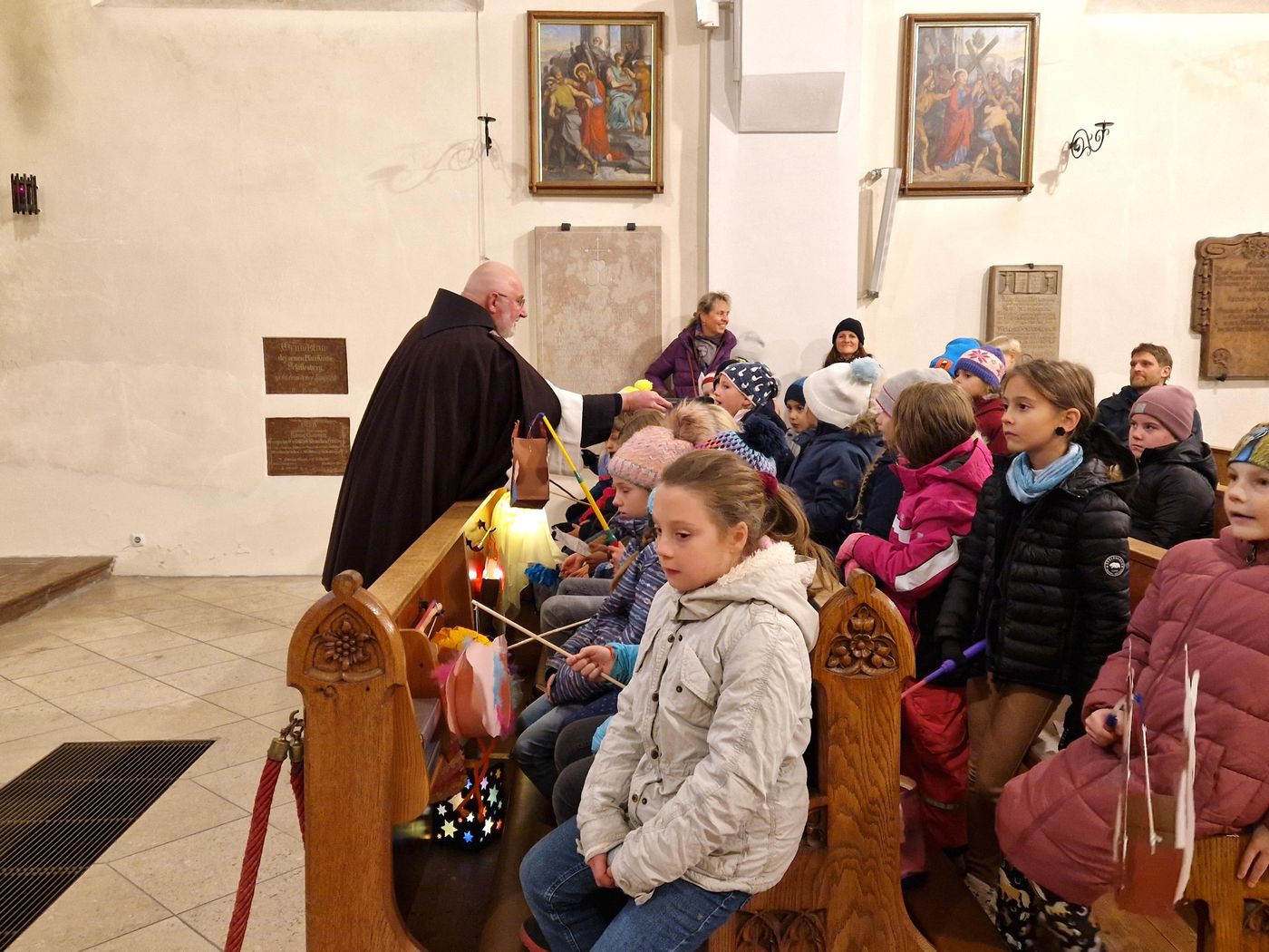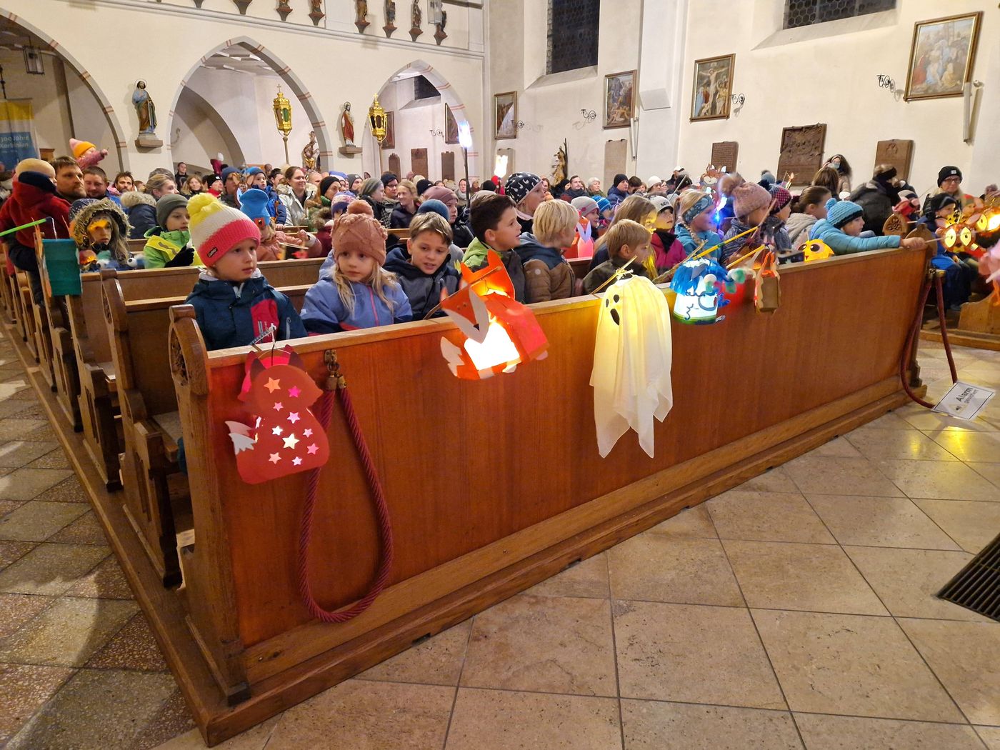 Die Pfarrkirche St. Nikolaus in Marktschellenberg hatte zur traditionellen „St. Martins-Andacht“ Mühe, das Aufgebot an Kindern aufzunehmen, um den Darstellungen des Franziskanerpaters Manfred Gruber lauschen zu können. Er rief vor den Kindergarten- und Schulkindern und den restlichen Besuchern die Geschichte um St. Martin und die lange zurückliegenden Ereignisse in Erinnerung. Um die Vorstellung der Geschehnisse zu unterstützen, hatten die Kinder 4 Bilder gefertigt, die von den Kindern am Altar gehalten wurden. Der Pater wies er auf das selbstlose Handeln des Hl. Martin hin, der uns Vorbild sein soll, um den in Not geratenen Menschen zu helfen.