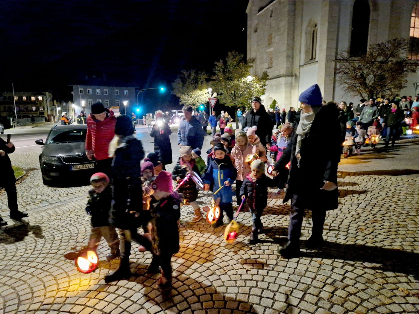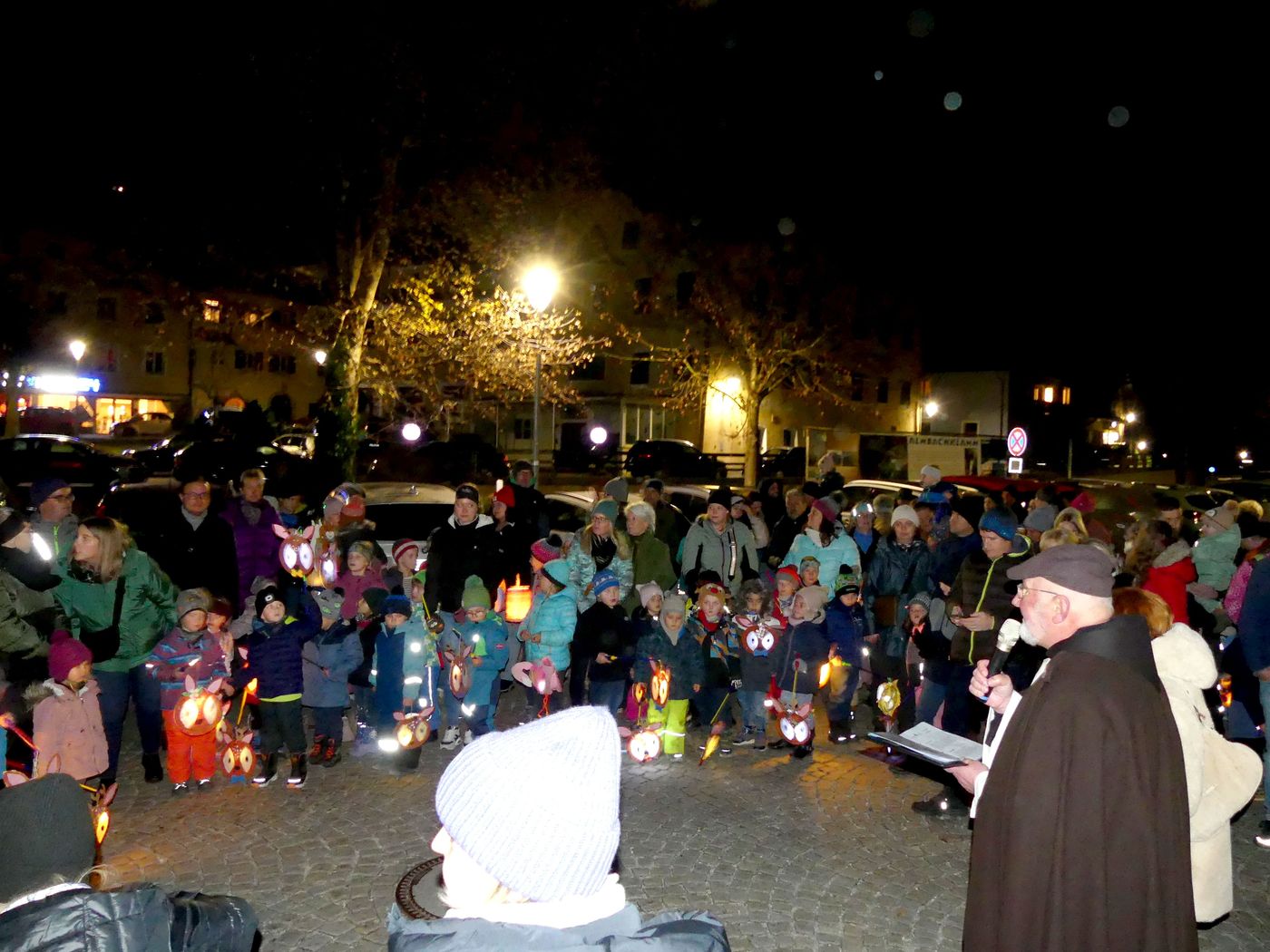 Organist und Kirchenchorleiter Adrian Suciu begleitete mit seinem Keyboard und Schuldirektorin Michaela Hennecke mit ihrer Gitarre den Gesang zu den Liedern, die die Kinder in der Schule eingeübt hatten. An der langsam aufkommenden Unruhe der Kinder erkannte man, dass sie sich schon auf den bevorstehenden Laternenumzug freuten, damit sie ihre kunstvollen Laternen endlich zum Leuchten bringen konnten. So rief dann Franziskanerpater Manfred Gruber zur Aufstellung zum Laternenumzug auf, der von der Musikkapelle Marktschellenberg angeführt wurde Es ging zunächst von der Kirchgasse hinunter zum ehem. Gasthaus Forelle, dort vorbei und überquerte die Bundesstraße, die von Mitgliedern der FFW abgesichert wurde, in den Park am Info-Point. Dort waren bereits die Hütten für den Adventsmarkt aufgebaut, wo für das leibliche Wohl gesorgt war und Würstelsemmeln, Kinderpunsch und auch Glühwein (für die Erwachsenen) angeboten wurden. Zuvor aber beschloss Pater Manfred die Veranstaltung mit dem Schlusssegen und wünschte Allen einen gesegneten Abend.