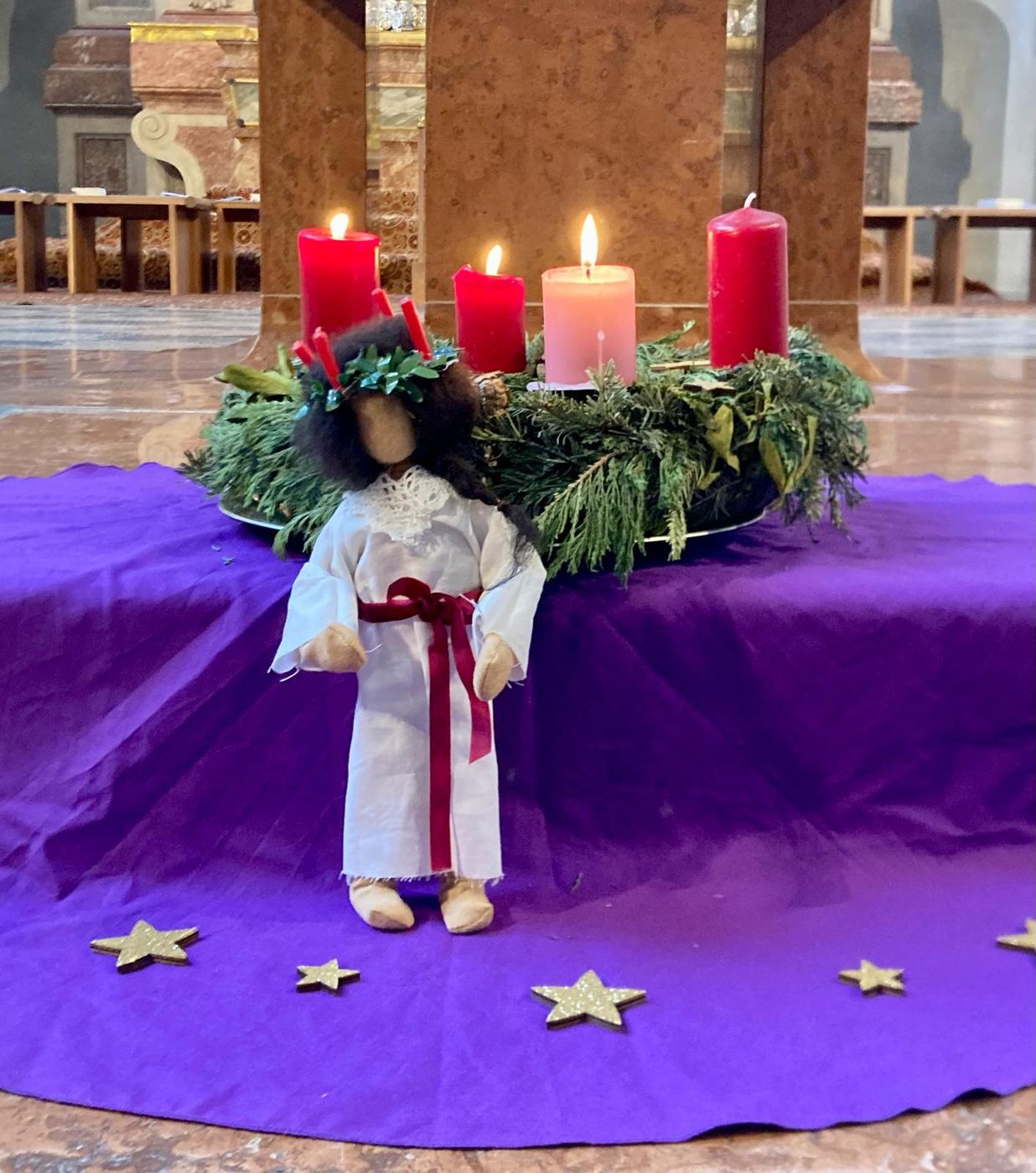 Am 3. Adventsonntag war ein besonderer Familiengottesdienst in der voll besuchten Stiftskirche, deren Einladung auch viele Familien mit ihren Kindern gefolgt waren. Der 13.12. ist der eigentliche Ehrentag der hl. Lucia, die in Syrakus auf der Insel Sizilien vor über 1700 Jahren lebte. Heute wird sie besonders in Schweden als Lichtbringerin verehrt wird, da es dort im Winter früh dunkel wird und sich die Menschen nach Licht sehnen.