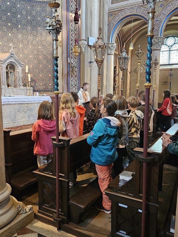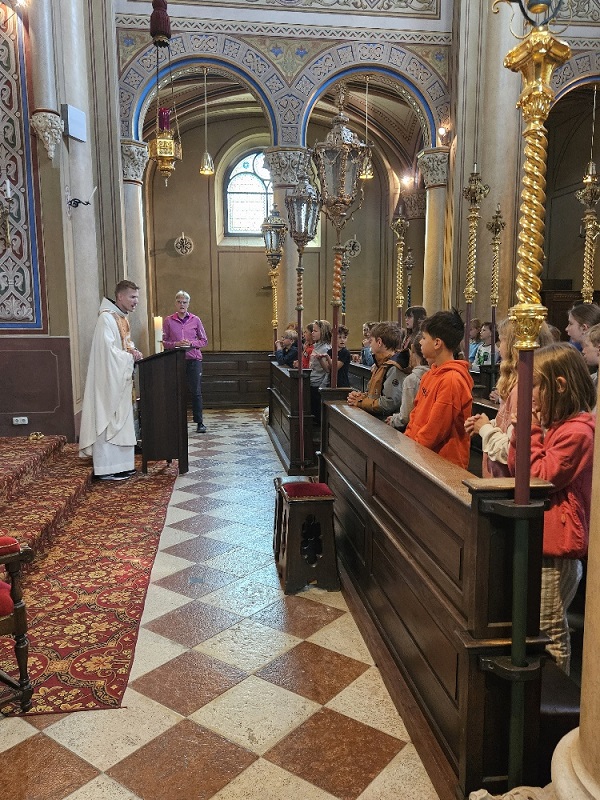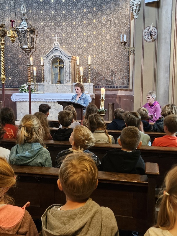 Die Gruppe aus Bischofswiesen machte sich zunächst auf den Weg zum Bahnhof und kam nach kurzweiliger Fahrt in Bad Reichenhall an, wo sie am Bahnhof auf Pater Fidelis traf. Nach einem kurzen Fußmarsch gelangten alle zur Alten Saline, wo in der Brunnhauskapelle gemeinsam eine Heilige Messe gefeiert wurde. Nach einer kurzen Brotzeitpause ging es im gleichen Gebäude in die Tiefe. Im sogenannten Quellenbau brachte eine Führerin den Kindern die Faszination von Technik und Geschichte näher. Der Rückweg zum Bahnhof wurde mit einem Eis und einem Spielplatzbesuch noch ein wenig versüßt.