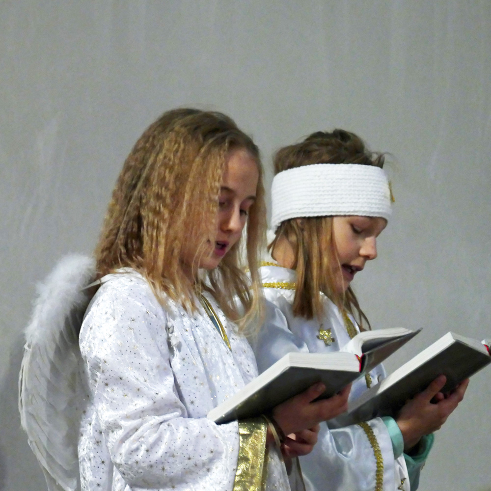 Die beiden Verkündigungsengel müssen noch ein bisschen warten, bis sie ihren Einsatz im Krippenspiel haben.