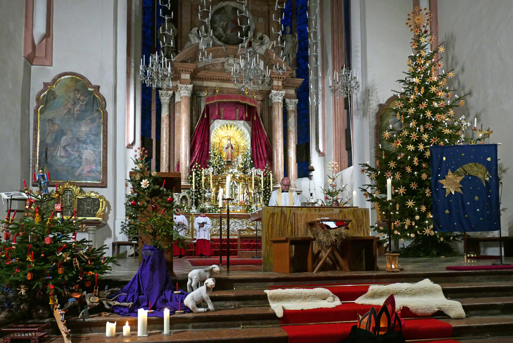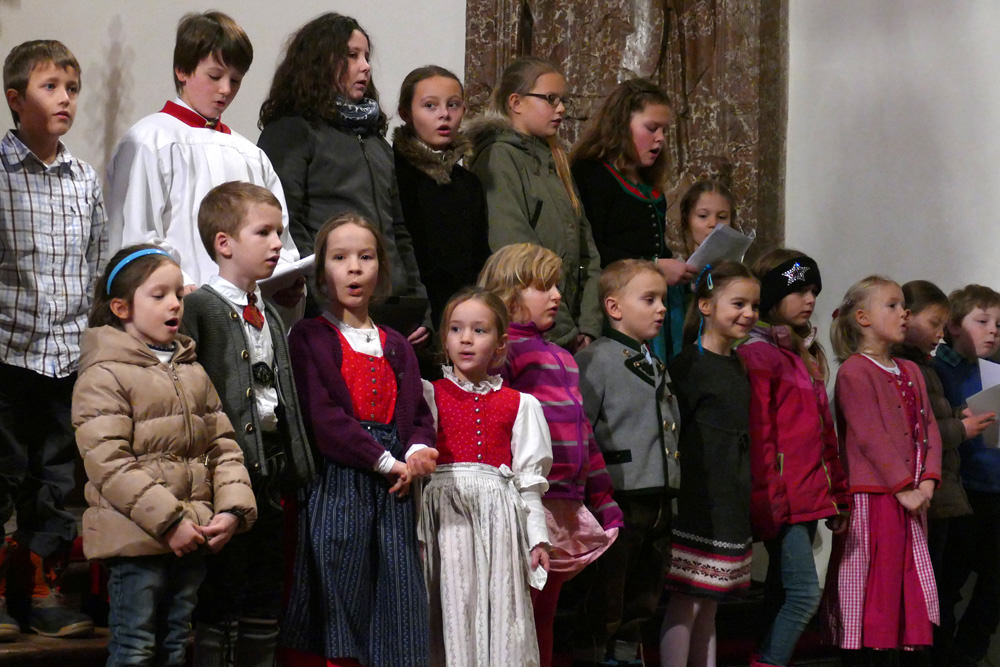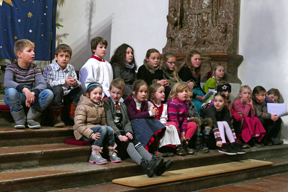Im Rahmen der sehr gut besuchten Kindermette am Nachmittag des Heiligen Abends zeigten einige Kinder ein von Kathi Stangassinger einstudiertes Krippenspiel. Der Kinderchor der Stiftsmusik unter Leitung von Stiftskapellmeister Stefan Mohr trug zur musikalischen Umrahmung der Wort-Gottes-Feier bei.