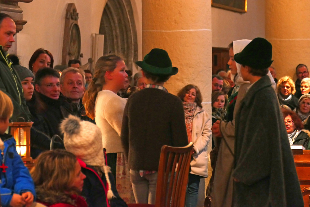 Der Kinderchor begleitet das Geschehen mit entsprechenden Weihnachtsliedern.