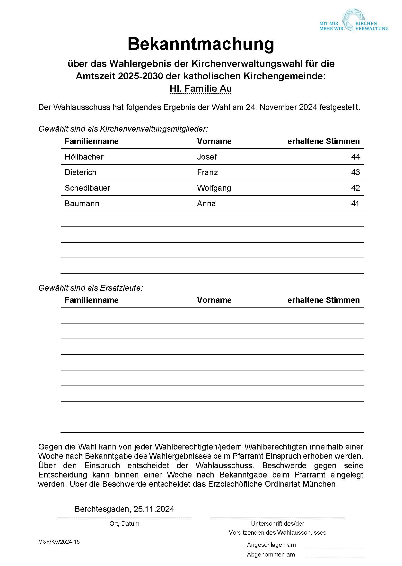 Kandidatenliste Pfarrei Hl. Familie Au |