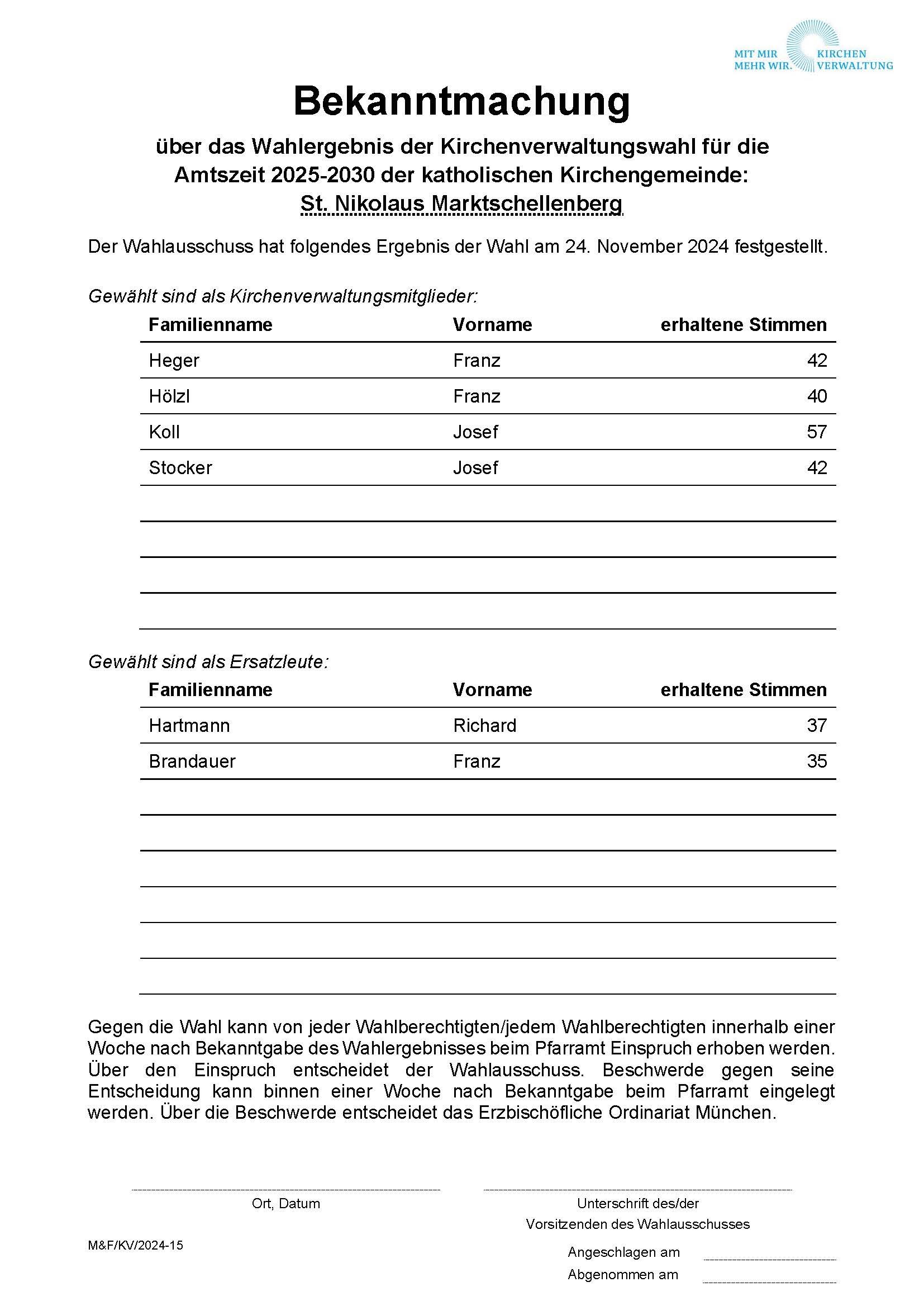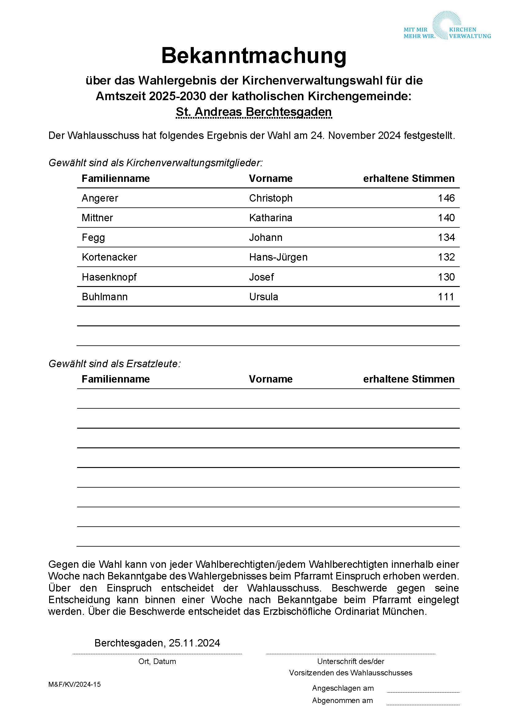 Ergebnisse der Wahl der Kirchenverwaltung vom 24. November 2024