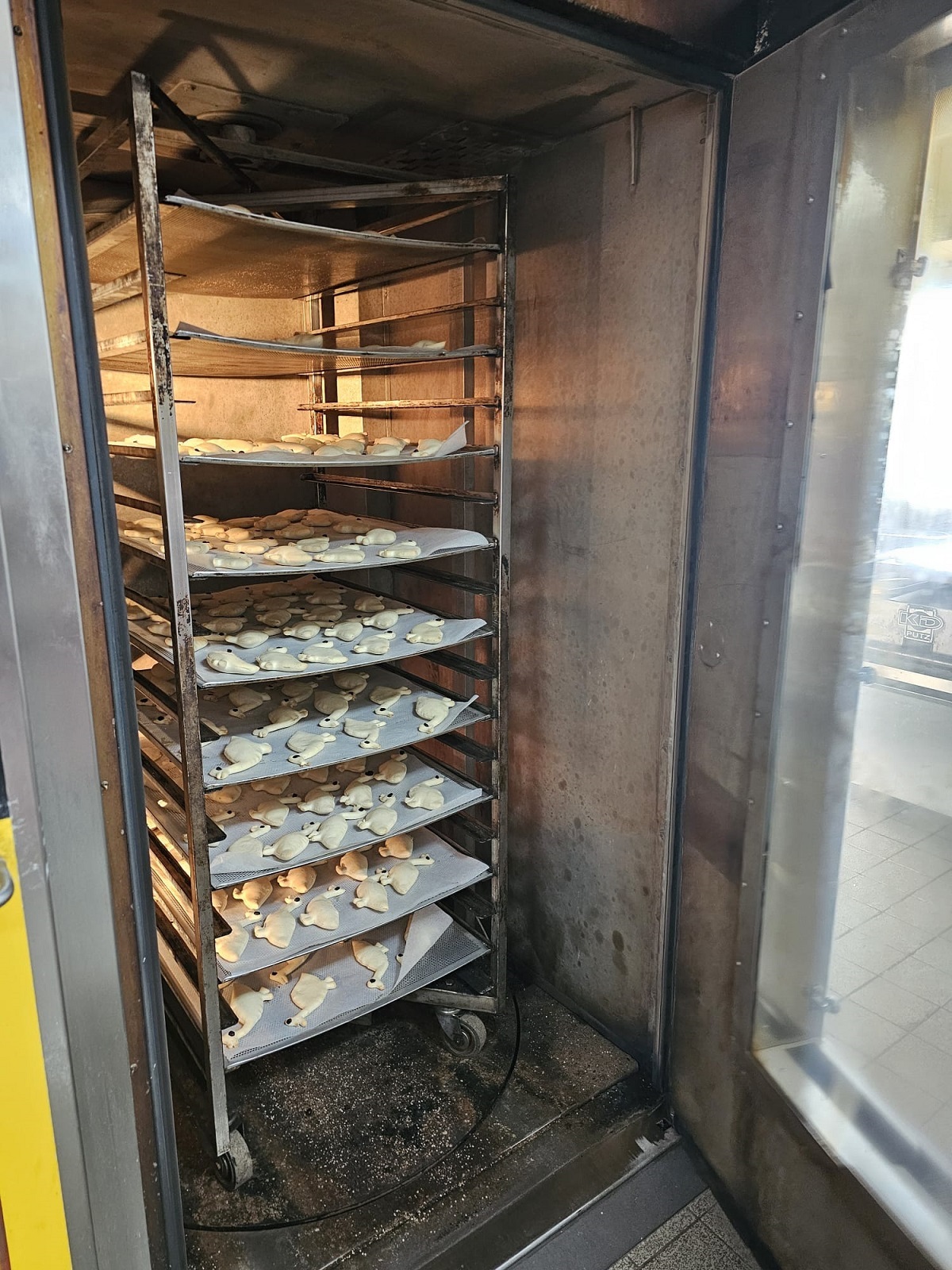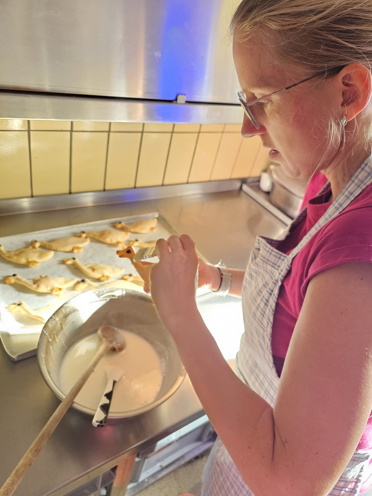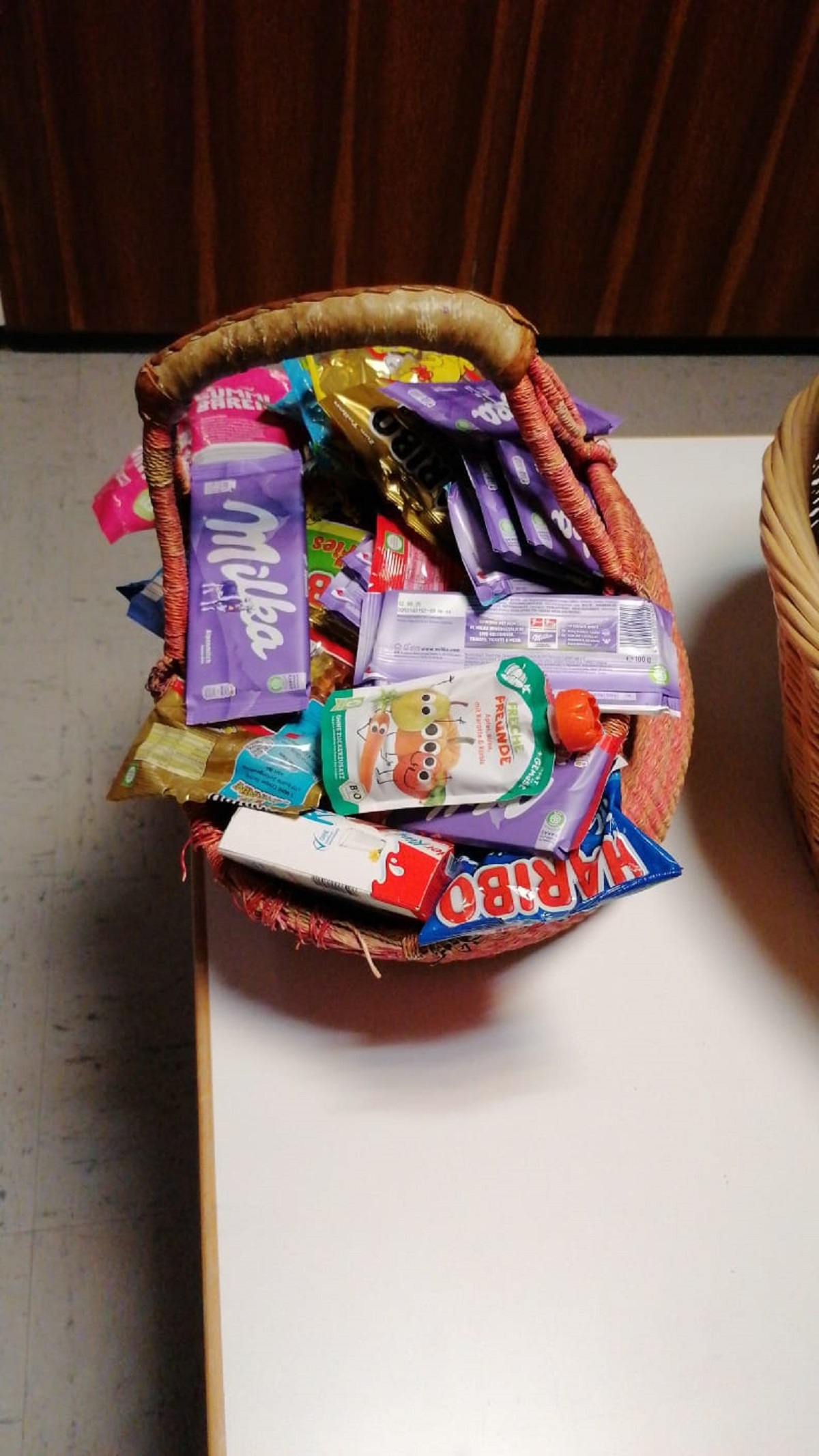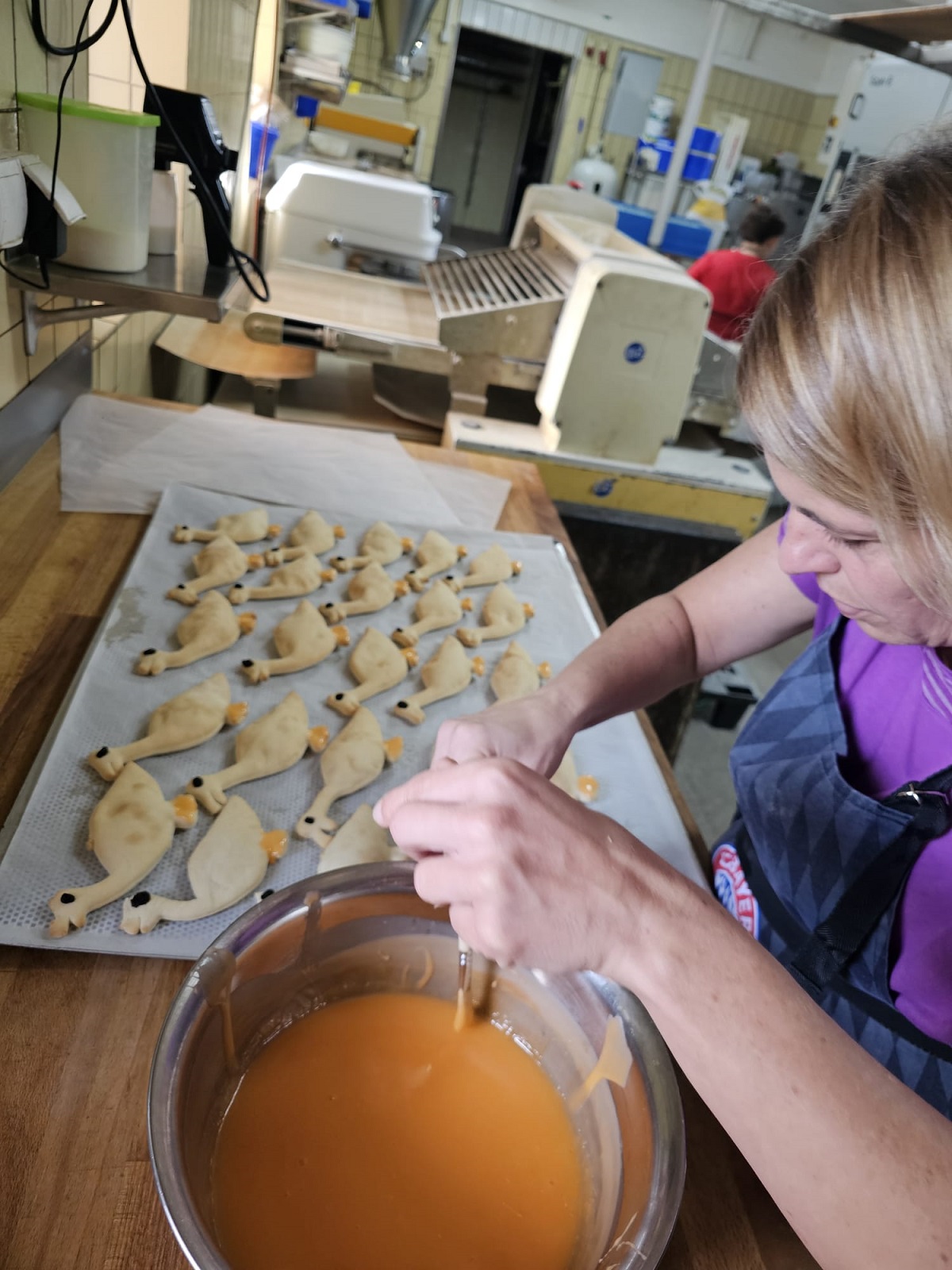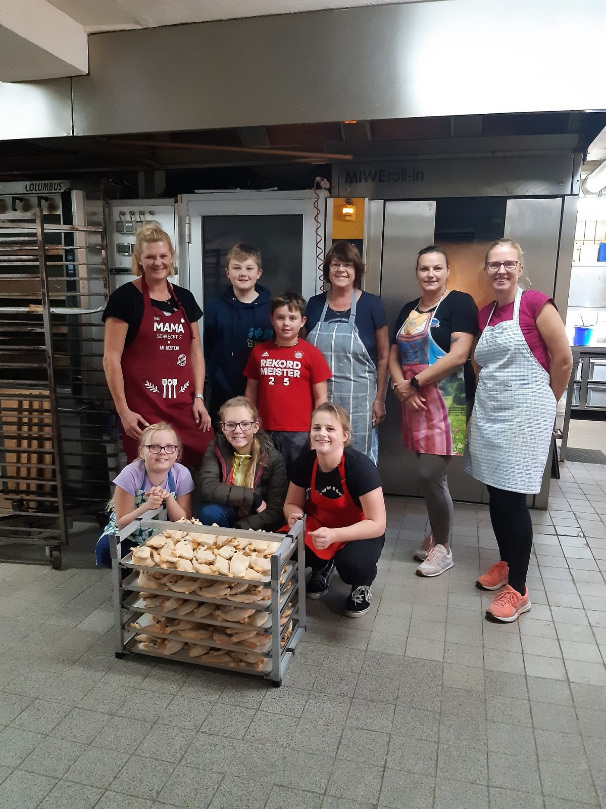 Nach der Rückkehr durften sich die Kinder zunächst eine vom Vorbereitungsteam in einer örtlichen Backstube gebackene Martinsgans abholen und eine Tafel Schokolade oder eine Tüte Gummibärli für die Tafel spenden. Am Kirchplatz bewirteten Pfarrgemeinderat und der Elternbeirat vom Kindergarten und ermöglichten so einen geselligen Ausklang.
