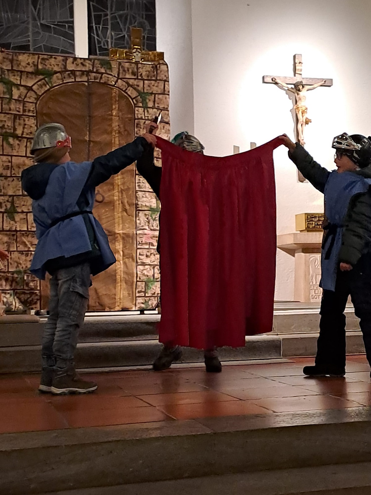 In der bis auf den letzten Platz von Familien, Kindergarten und Spielgruppe gefüllten Winkler Pfarrkirche wurde am Martinsfest eine ökumenische Andacht gefeiert. Die Kommunionkinder hatten dazu ein Martinsspiel eingeübt und dabei auf eindrucksvolle Weise die Mantelteilung dargestellt. Die Botschaft vom Teilen wurde in Gebeten und der Bibelstelle nochmals unterstrichen.