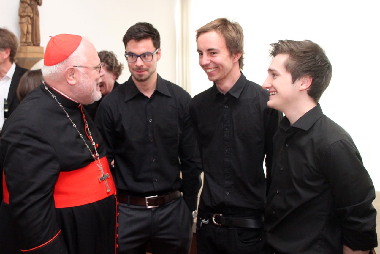Nun hatte die Musik das Wort: Lisa Wiltsch, Philipp Kortenacker, Simon Kohl, Udo Langenhorst, Tassilo Neugebauer, Adrian Suciu, Jonathan Story, und Simon Bauer brachten kurze musikalische Beiträge, bei denen der Flügel jeweils eine tragende oder begleitende Rolle spielte. Beispielsweise sang Jonathan Story die Arie des Sarastro aus Mozarts Zauberflöte „O Isis und Osiris“, was bei Kirchenpfleger Hermann Amann beim Lesen des Programms etwas Bauchschmerzen verursacht hat, wie er bekannte, „weil in Anwesenheit des Kardinals vorchristlichen Göttern die Reverenz erwiesen wird“. Die Bauchschmerzen waren unbegründet: Kardinal Marx genoss sichtlich die Bass-Arie des Sarastro und alle übrigen Beiträge, die mit viel Applaus bedacht wurden.