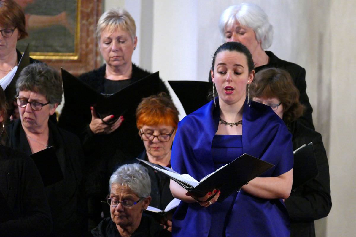 Den Auftakt des Chorkonzertes bildete nach der Begrüßung allerdings ein zeitgenössisches Werk: „Triptych“, ein dreisätziges Stück des britischen Komponisten Tarik O’Regan (geboren 1978), sorgte für ein ungewohntes Hörerlebnis. Reine Instrumentalmusik wechselte sich mit Chor-Passagen ab und vor teils flirrenden Streicherklängen entfaltete sich der warme Sopran von Elise van Es. Der Komponist, der das Werk für eine Reihe von Konzerten in Jerusalem und im Westjordanland geschrieben hat, nimmt darin auch Anleihen an nordafrikanischer und Jazzmusik.